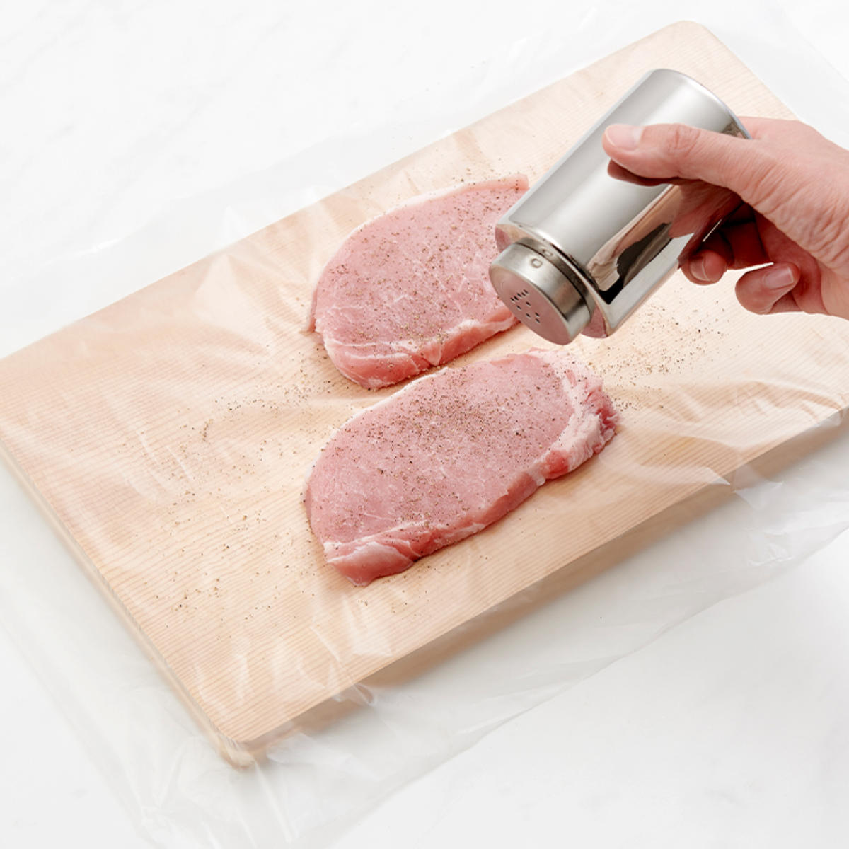 ニオイ・色移り・衛生面が気になる食材からまな板の汚れを防止します。抗菌仕様なので、安心してお使いいただけます。