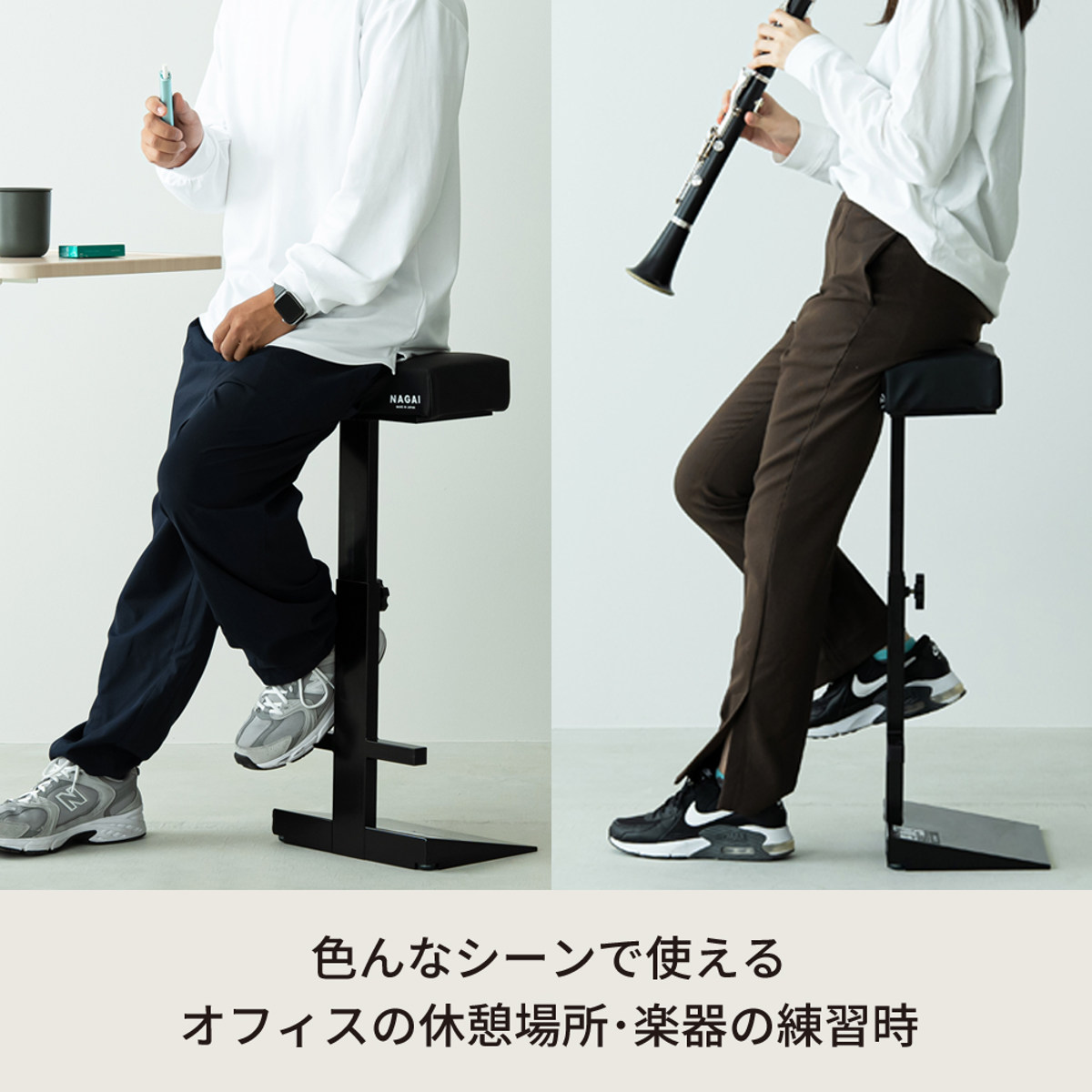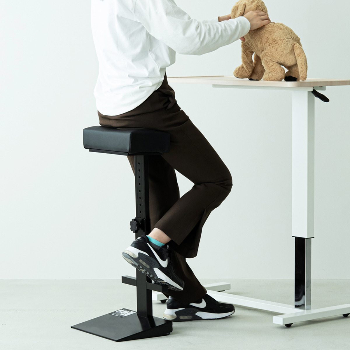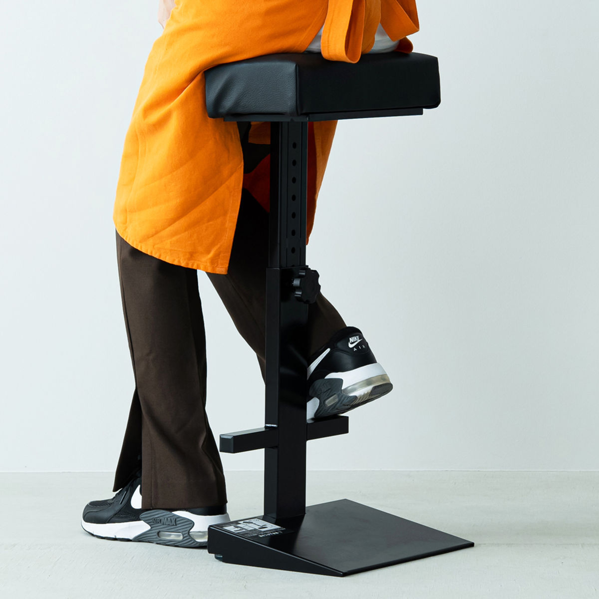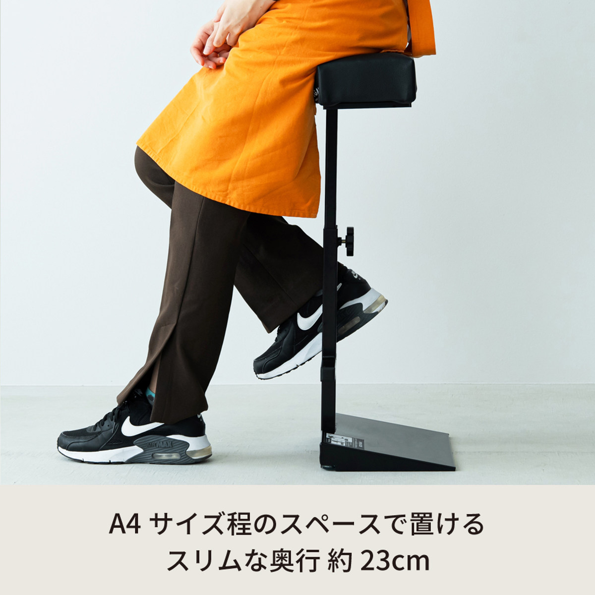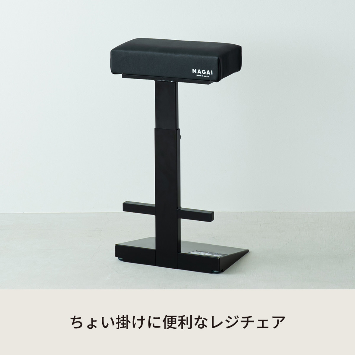 レジ打ち・カウンター接客やライン作業など、疲れやすい立ち仕事をサポートしてくれるレジチェアです。ちょい掛けすることで、脚への負担を軽減してくれます。フットレストに脚をかけるとさらに楽になります。