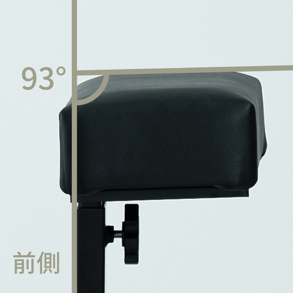 座り下りのしやすさを考え、座面が約93度に前傾するように設計されています。