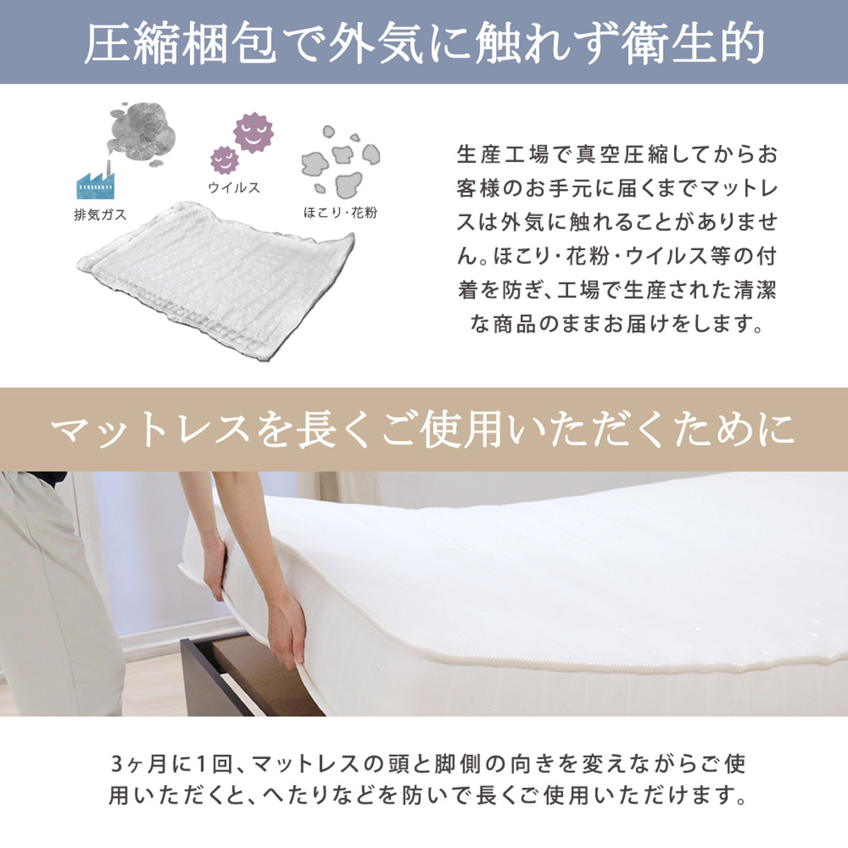 マットレス ダブル ポケットコイル 日本製 圧縮梱包 ( マット 寝具 両面 防菌 防臭 防ダニ 厚さ19cm 両面同構造 リバーシブル 耐圧分散 ホワイト 清潔 国産 )