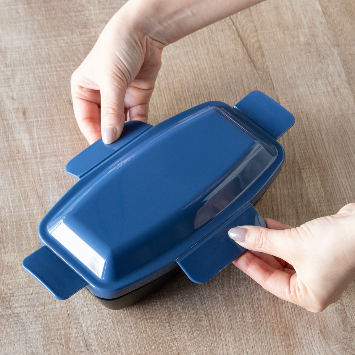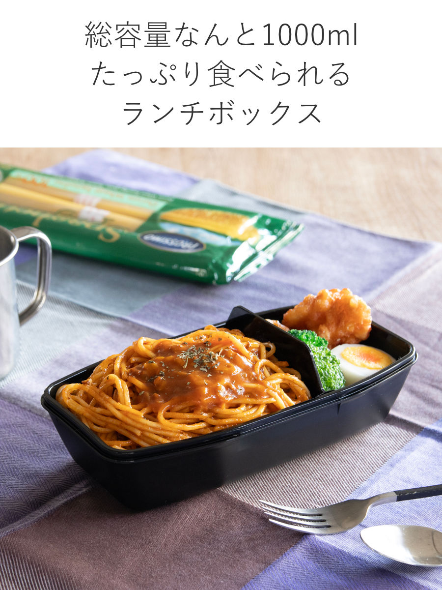 片手で持ちやすいスリム形状のランチボックスです。本体容量は750mlですが、蓋がドーム型になっているので総容量は1000mlと、たっぷり入ります。
