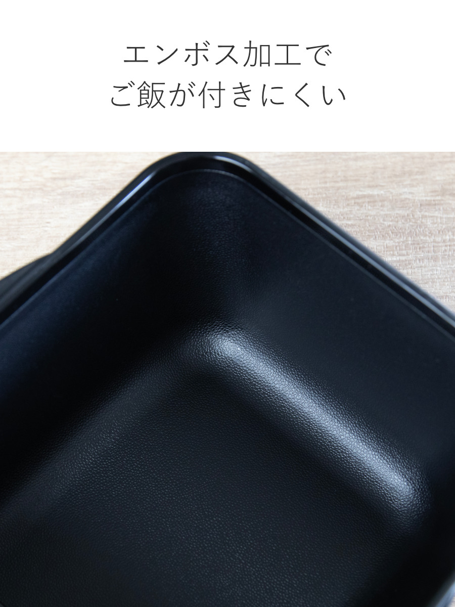 お弁当箱の内側にはエンボス加工が施されているので、ご飯がくっつきにくく、洗い物の際も汚れが落ちやすいです。