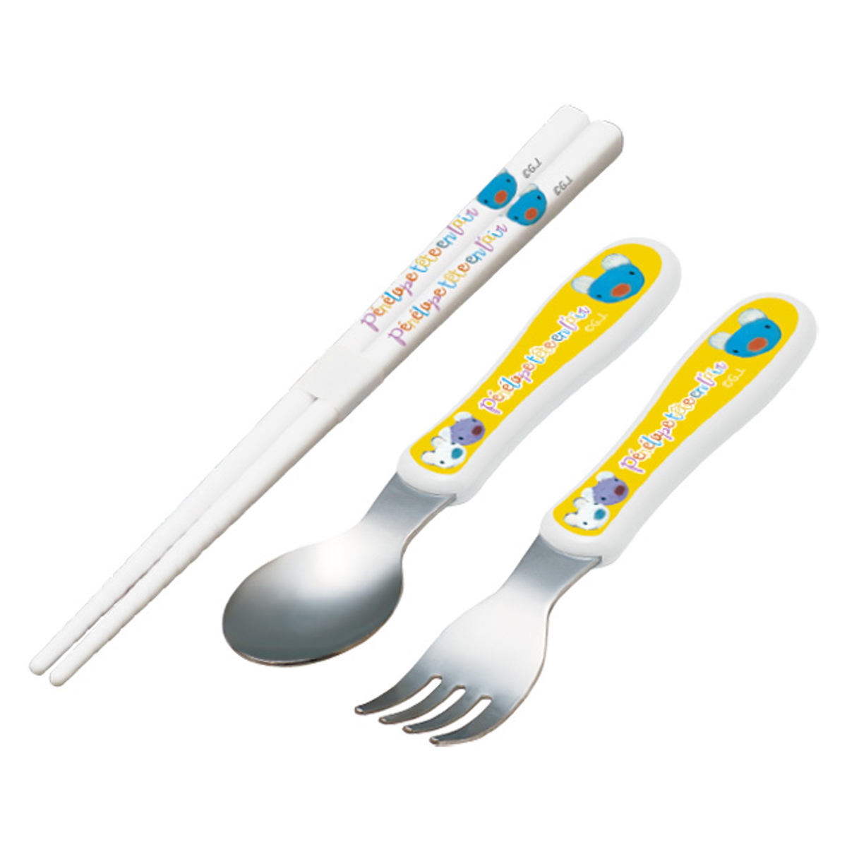 16.5cmのお箸、スプーン、フォークがセットで入っているので、メニューによって使い分けることができ、お子様の使いやすいカトラリーで食べられます。