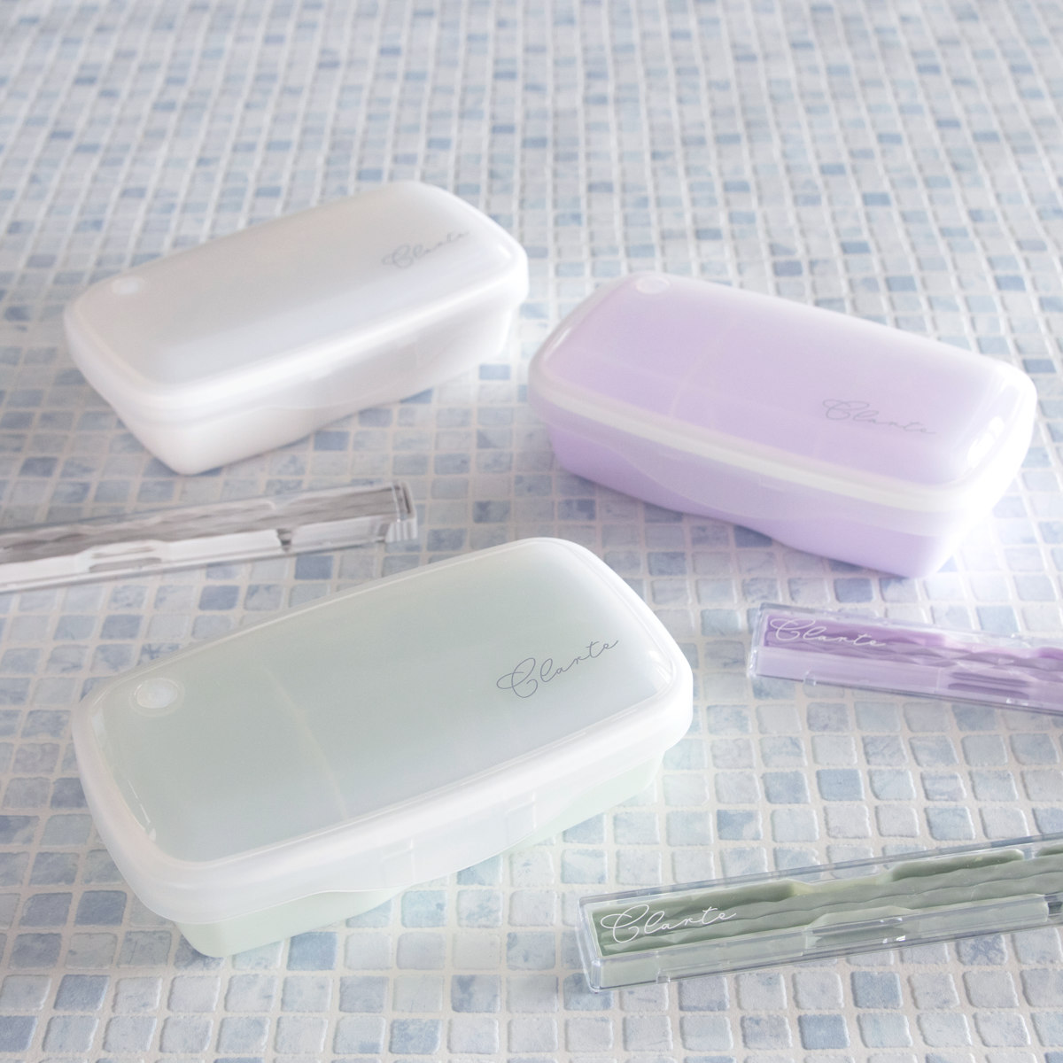 ニュアンスカラーがデイリーファッションと合わせやすいクラーテシリーズです。シリーズで揃える事で、ランチタイムをより華やかに彩ります。