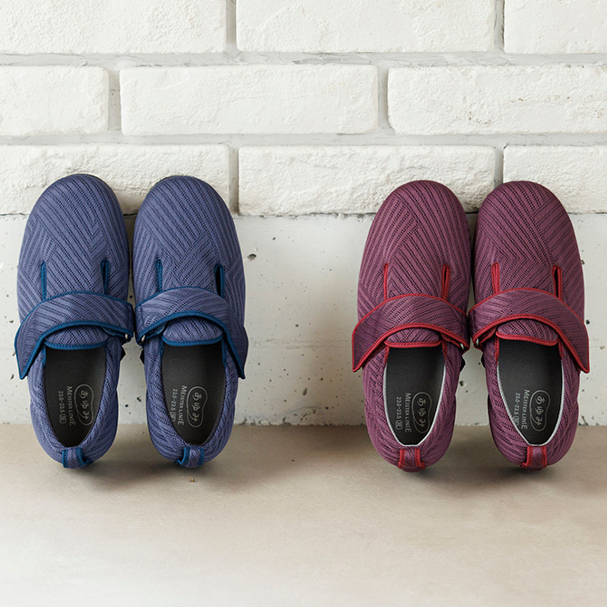 歩きやすさ履きやすさ、転倒のしにくさはもちろんのこと、「履いて楽しくなるおしゃれさ」を大切に、色やデザインにもこだわっています。