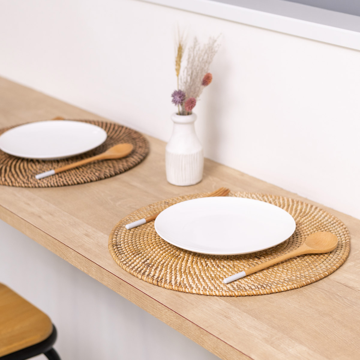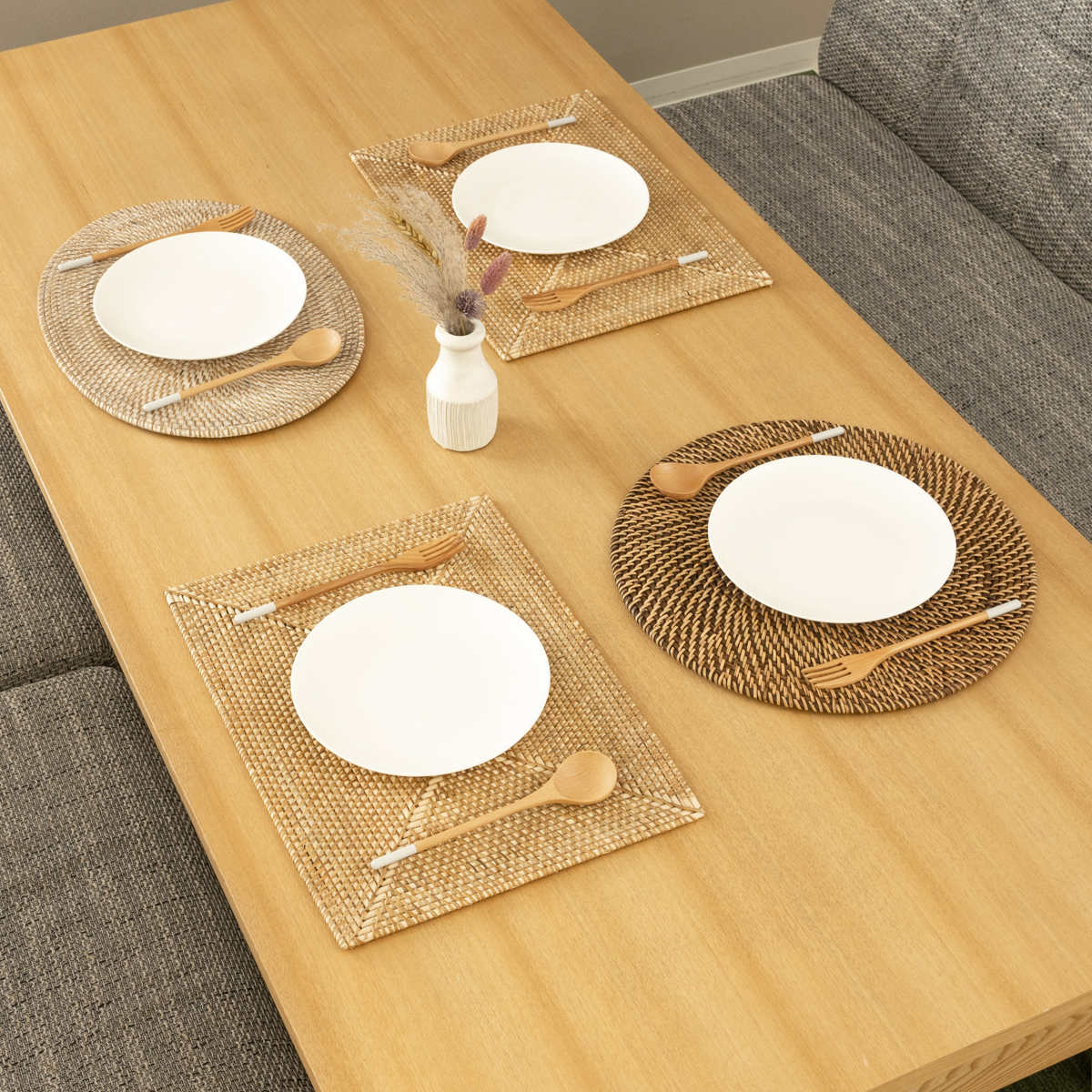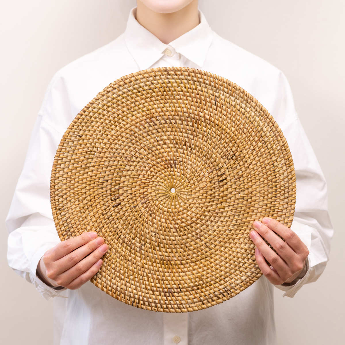 軽量でありながらしっかりとした硬さのあるラタン素材のプレイスマットです。手作業で丁寧に編み込まれた丈夫な作りになっており、いつもの食卓にプラスするだけで料理や器が引き立ち、特別感のあるテーブルコーディネートに仕上がります。