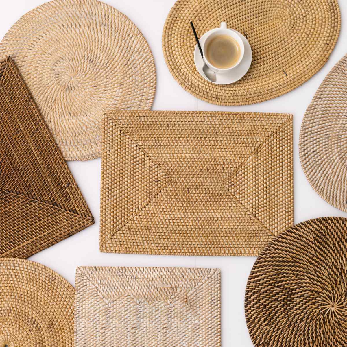 軽量でありながらしっかりとした硬さのあるラタン素材のプレイスマットです。手作業で丁寧に編み込まれた丈夫な作りになっており、いつもの食卓にプラスするだけで料理や器が引き立ち、特別感のあるテーブルコーディネートに仕上がります。