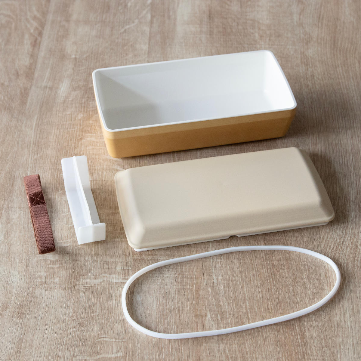自然のあたたかみを感じるカラーのお弁当箱は年齢、性別問わずに使えるデザイン。適度なサイズ感で、使い勝手と見た目の両方を満足させます。バランスよく盛り付けるための仕切りも付いています。