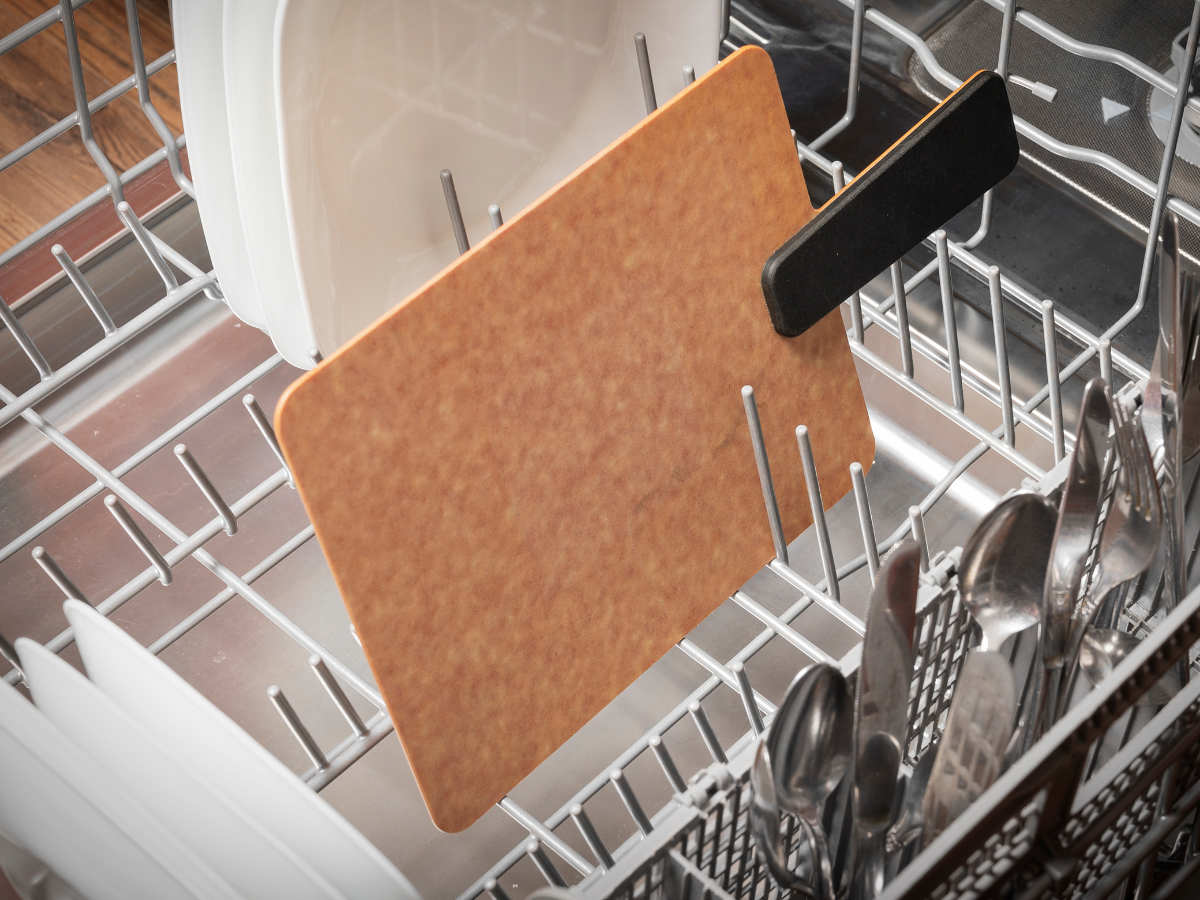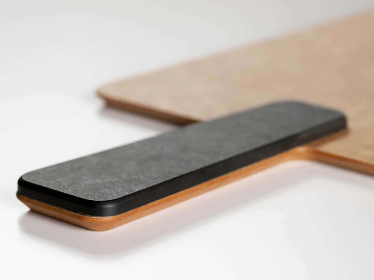 天然木の繊維を合成した素材を使用しているため、耐久性に優れています。木製のまな板と違い、強度があるので包丁があたると高い音が鳴りますが、刃あたりは優しく刃を傷めません。