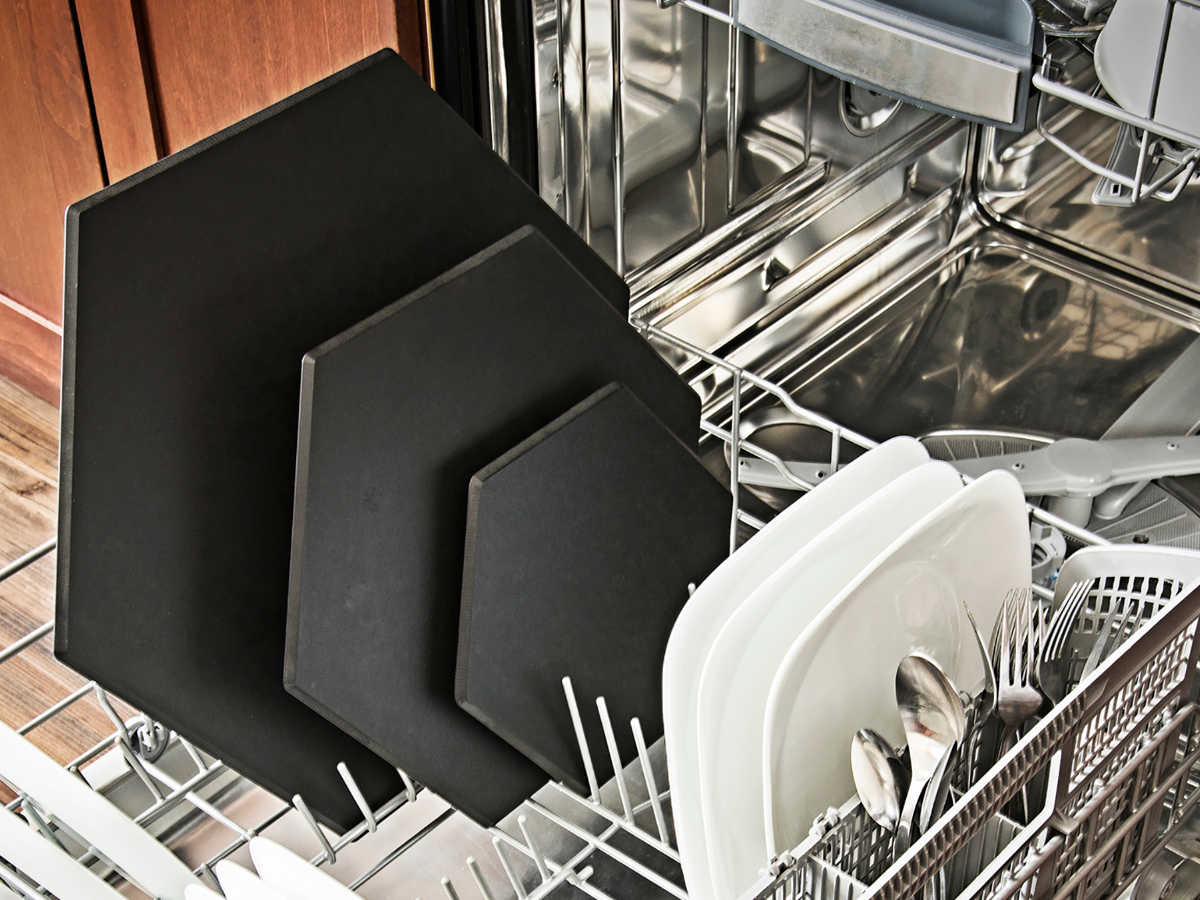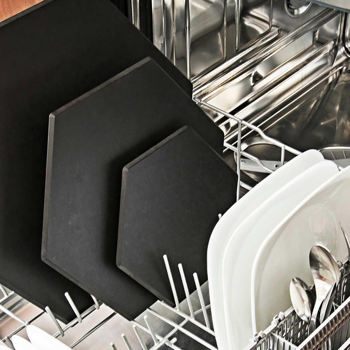 表面は非多孔性なので、水分や細菌の浸入を防ぎます。水洗いしても、水切れがよく乾きやすいのがポイントです。食洗機の使用も可能です。