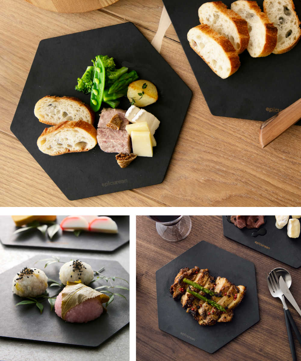 天然木の繊維を合成して作られたエピキュリアン。軽くて薄く、機能性にも優れた使い勝手の良さが魅力です。四角形や丸型のまな板と比べて限られたキッチンスペースで効率的に使用することができます。