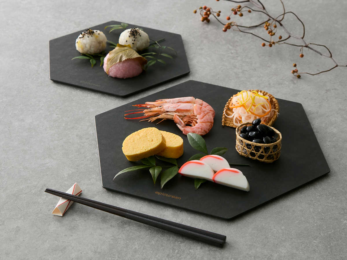 ●お料理を並べて、お祝いの席やおもてなしのシーンでも活躍する1枚です。