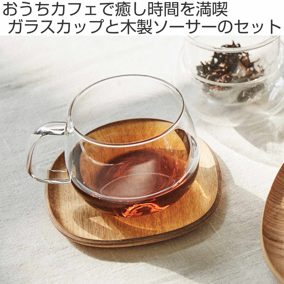 KINTO キントー UNITEA カップ&ソーサー 350ml 125mm ウィロー ( ガラス 天然木 耐熱ガラス 電子レンジ対応 食洗機対応 カップ ソーサー コップ おしゃれ かわいい ガラスマグ ガラスコップ マグカップ コーヒー 紅茶 )
