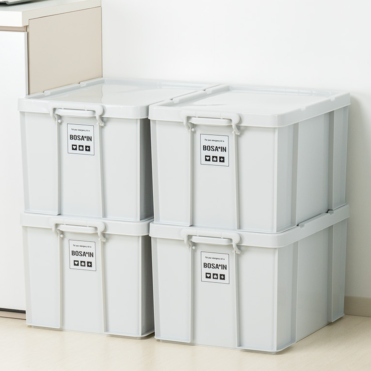 収納ボックス 積み重ねボックス 53 BOSA+IN 幅39×奥行53×高さ32cm 4個セット ( 収納ケース 収納 フタ付き ボックス 収納コンテナ 大容量 スタッキング バックル付き 頑丈箱 防災グッズ 防災 コンテナボックス ロック付き )