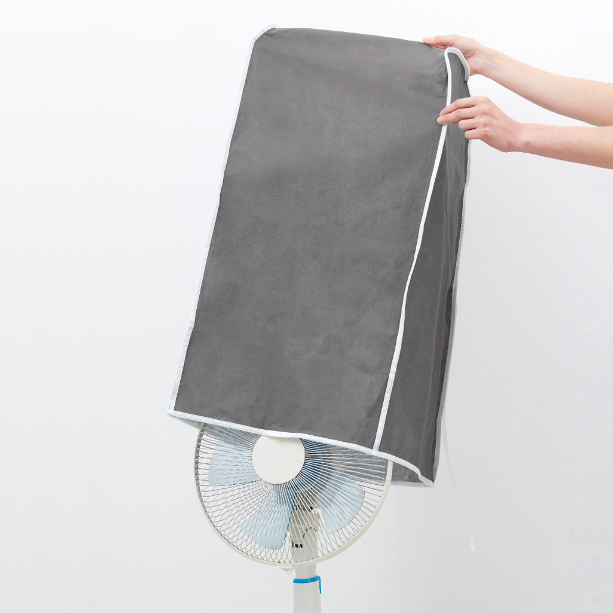 扇風機本体に被せるだけの簡単収納で、中に納まる大きさのミニサイズヒーターのホコリ除けとしてもお使いいただけます。扇風機と交互に使えるので、1年中活躍します。