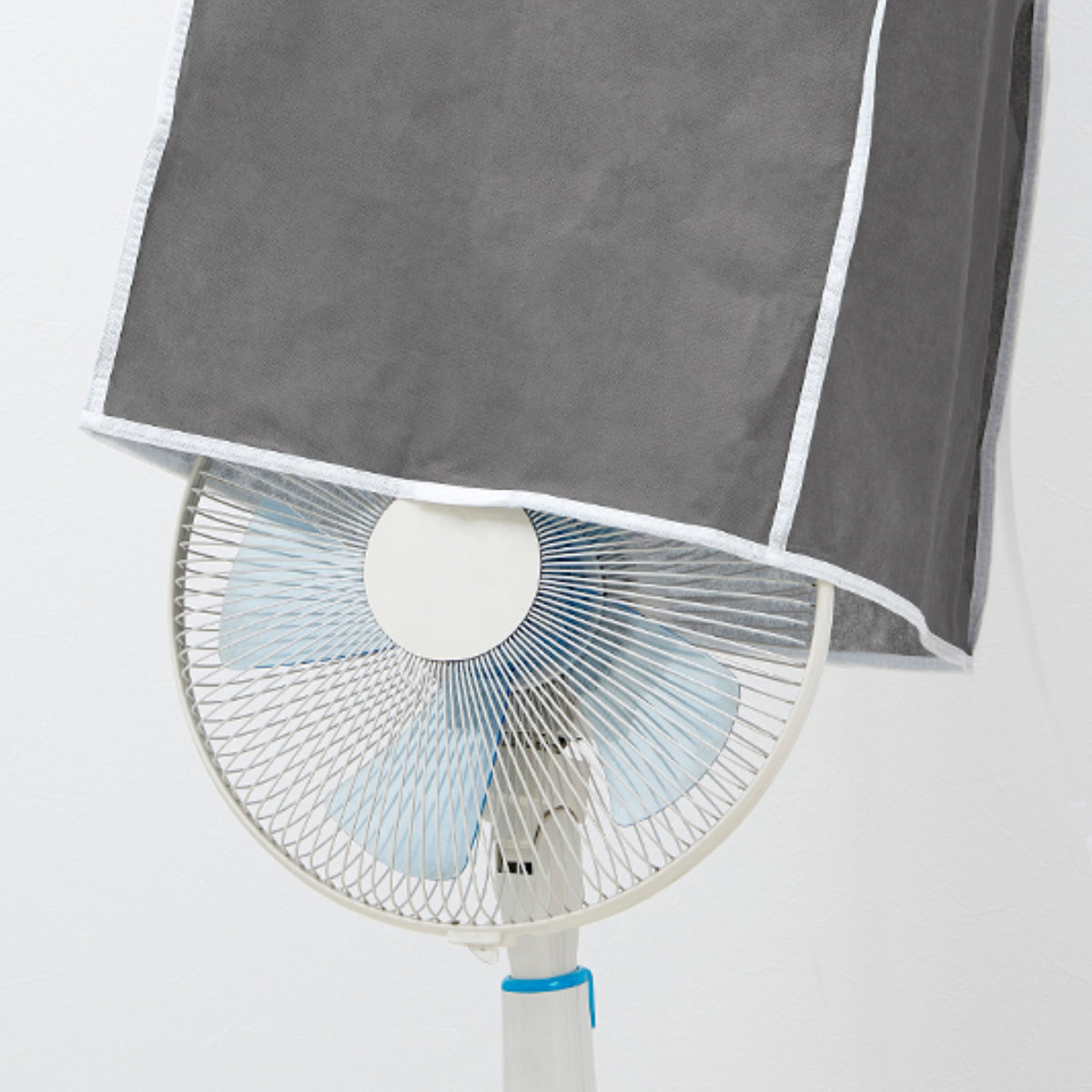 無地のグレーにホワイトのパイピングがおしゃれな扇風機収納カバーです。シーズンオフの扇風機をホコリから守り、清潔に保ちます。
