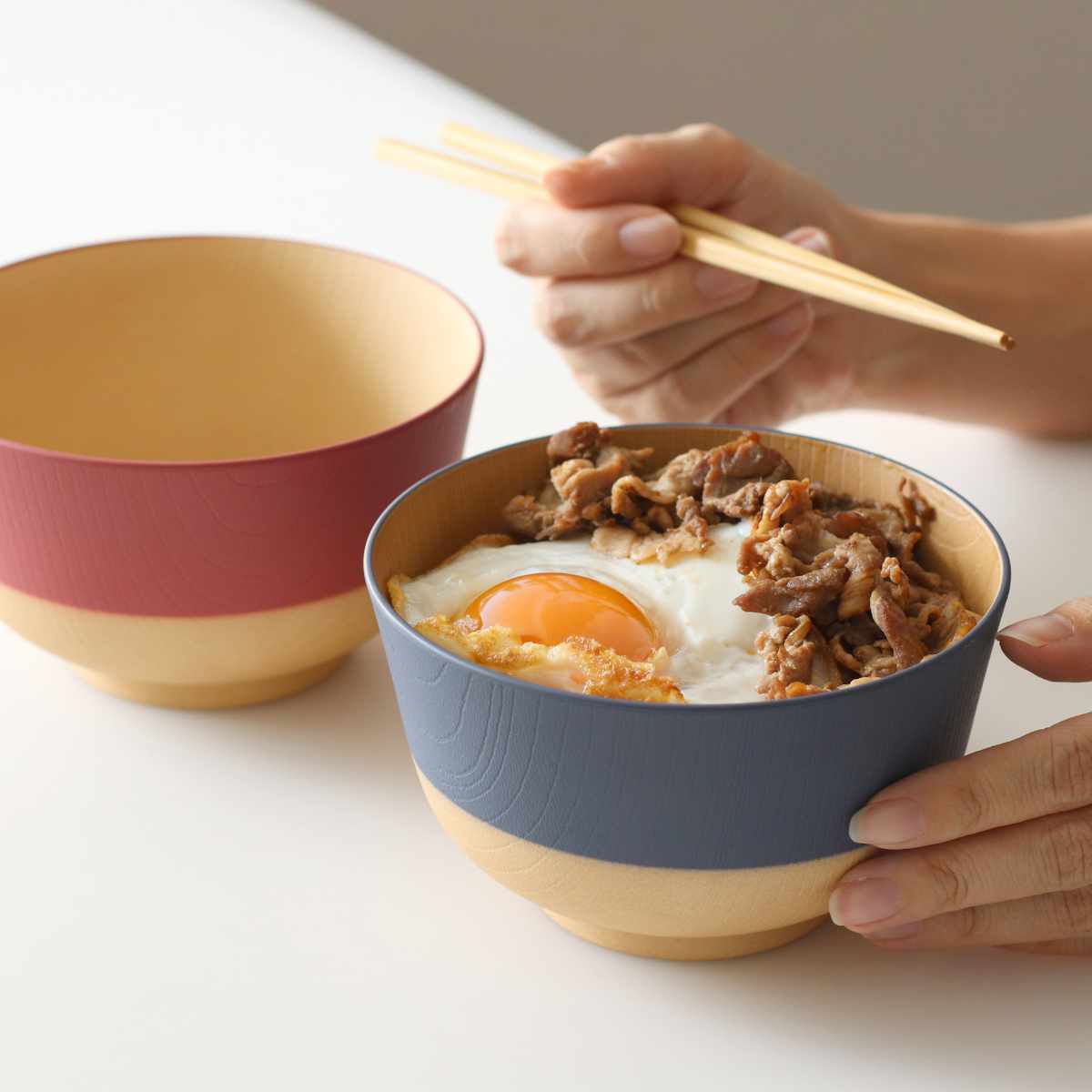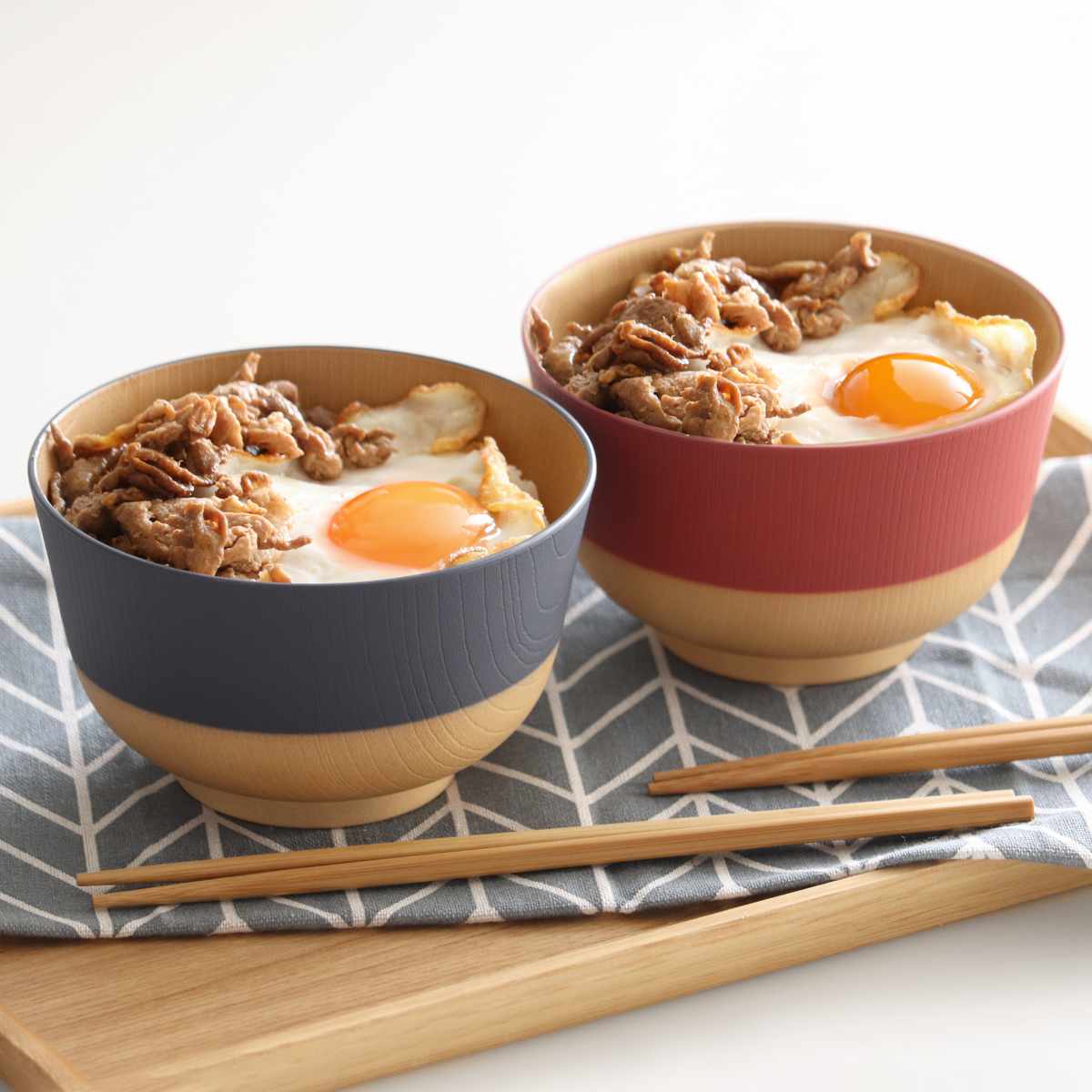 どんぶり やさしい彩り 2個入 ( 日本製 電子レンジ対応 食洗機対応 丼ぶり 麺鉢 700ml おしゃれ かわいい 抗菌加工 親子丼 うどん そば 木目調 軽い 割れにくい 子ども 介護 )