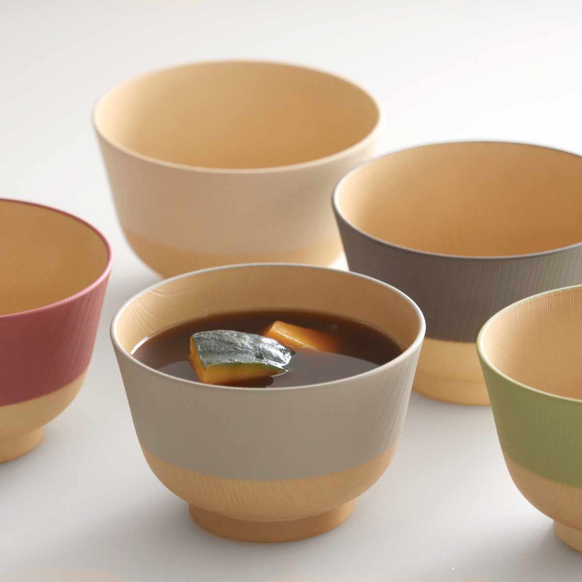 食卓をやさしく彩る、日本の伝統色を使用した汁椀です。味噌汁やスープはもちろん、お茶漬けやサラダなどにもピッタリです。5個入りなので、ファミリーでカラー違いを使うのもおすすめです。