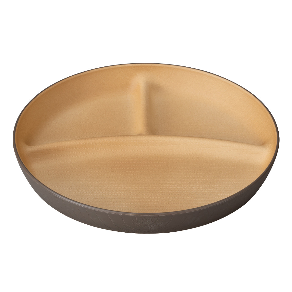 表面はさらさらとした手触りで、木目調のデザインがほどこされています。お手入れが手間な木製食器と比べて、樹脂製食器は扱いやすいのが特徴です。
