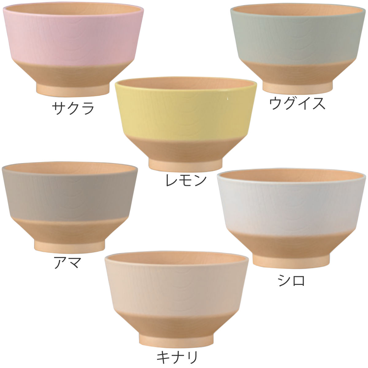 | 種類 | サクラ、レモン、ウグイス、アマ、キナリ、シロ |