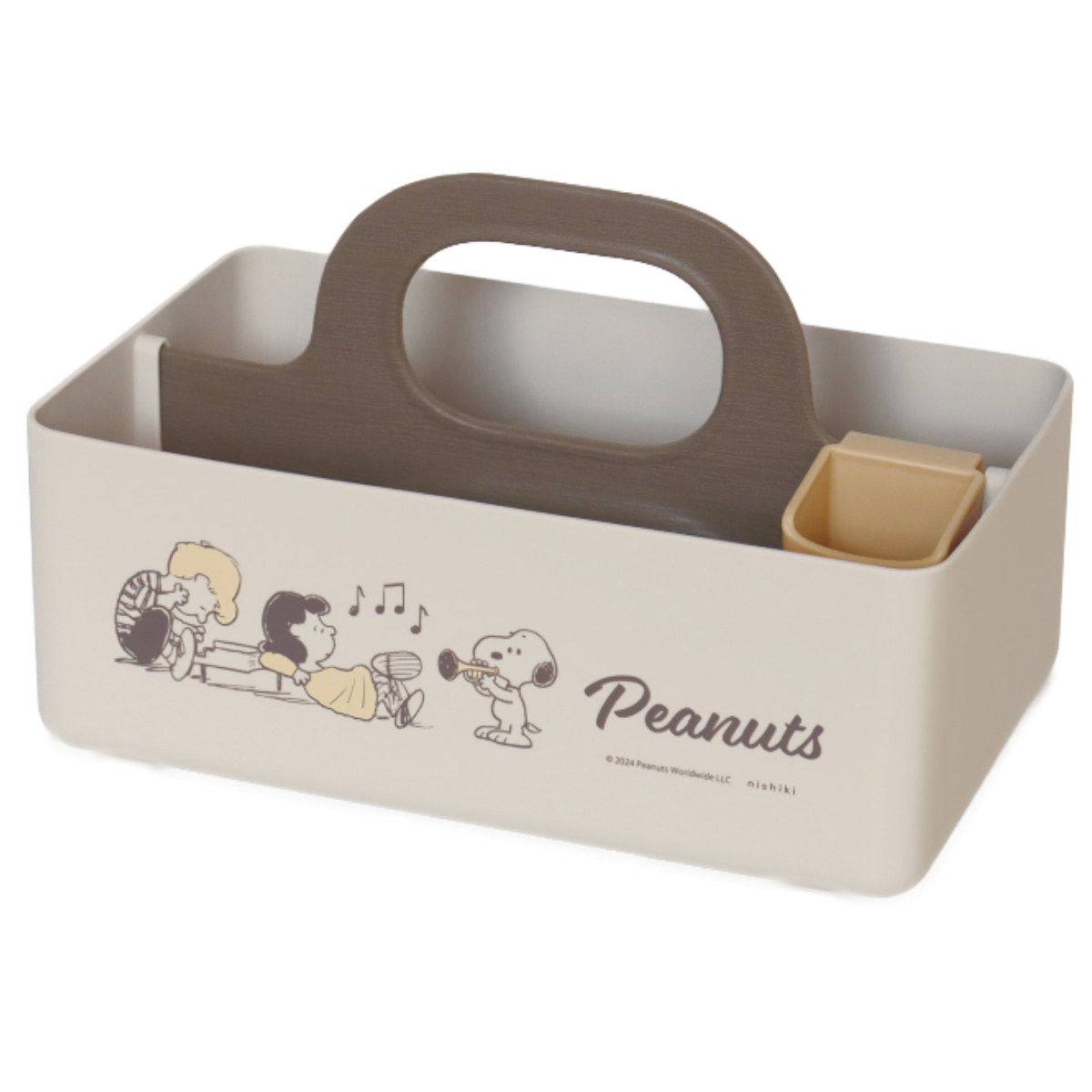 収納ボックス ミニモッテケース スヌーピー 小物入れ 幅20.7×奥行12.5×高さ13.5cm ( SNOOPY 小物収納 ハンドル付き 収納ケース 仕切り付き 日本製 小物ケース リビング 収納 ケース 卓上 整理整頓 持ち運び コンパクト ) 【アイボリー】