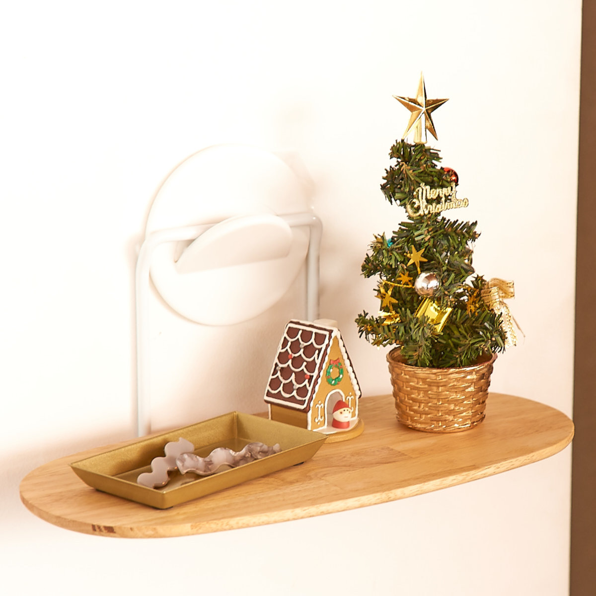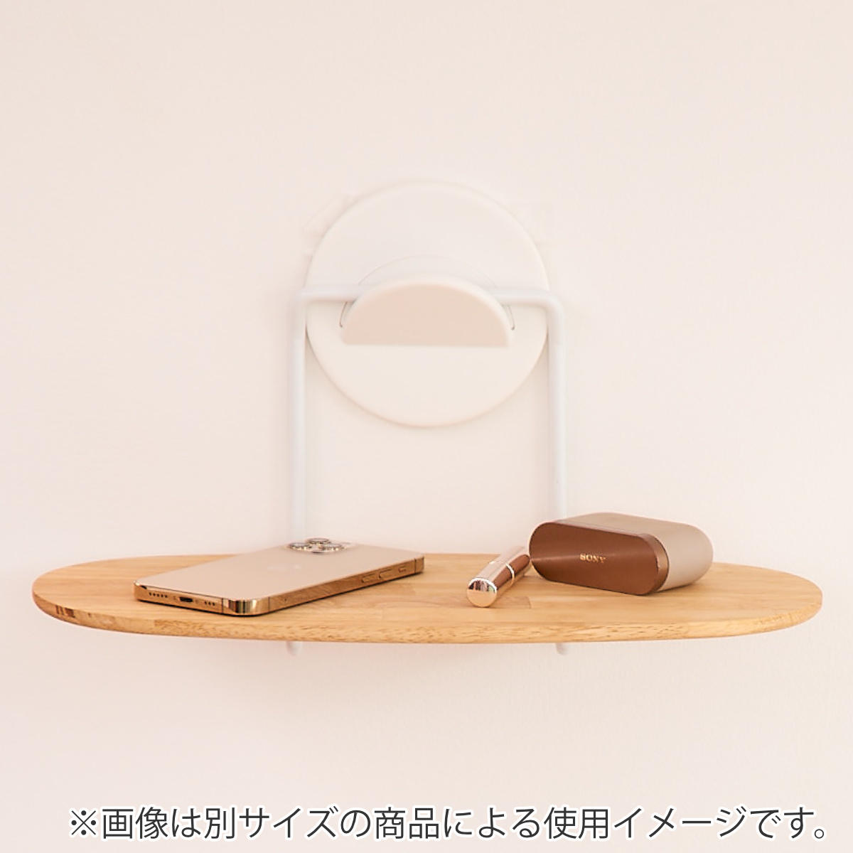 別売りのサークルフックにかけられるハングシェルフです。引っかけるだけなので、欲しいときに簡単に棚の設置が可能です。使い終えて棚を外せば、サークルフックはそのまま日常使いできるのもうれしいポイントです。