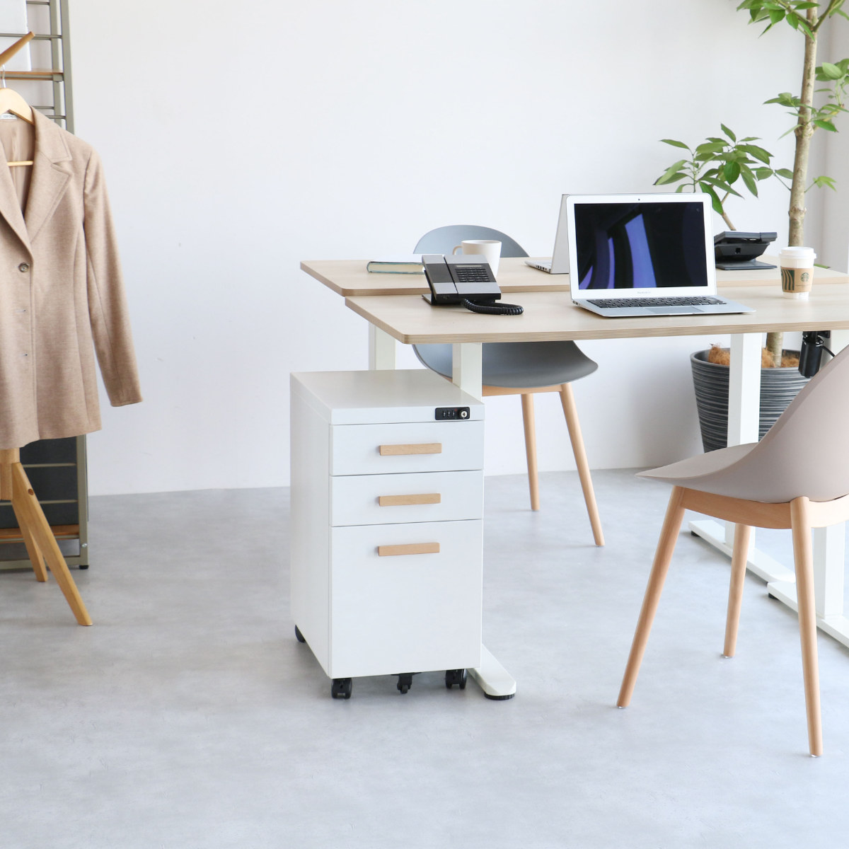 デザインにこだわったデスクワゴンです。スチール×天然木(ビーチ材)を使用しオフィスに温もりのある環境を創り出してくれます。