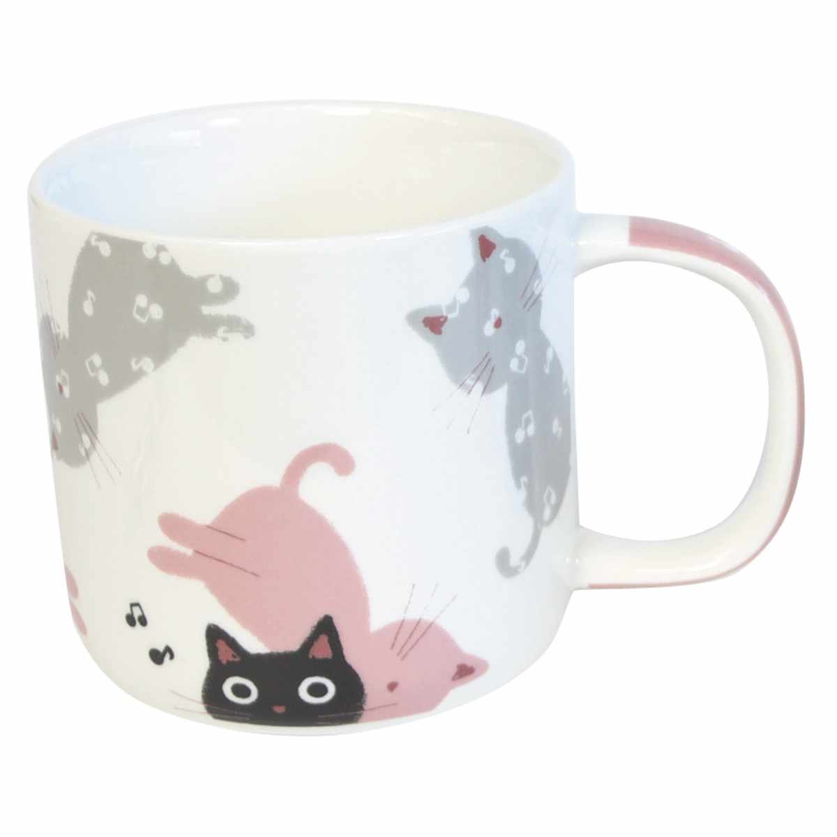 マグカップ 340ml 音たま 磁器 ( 食洗機対応 電子レンジ対応 マグ カップ コップ 食器 コーヒーカップ ティーカップ アニマル 動物 ネコ ねこ 猫 コーヒー 紅茶 ティータイム かわいい 大きめ ) 【ピンク】