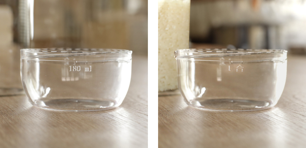 容量約180ml(1合)が測れるコップ付きなので、調理中に計量カップとして出汁などを蓋で測って注ぐことができます。