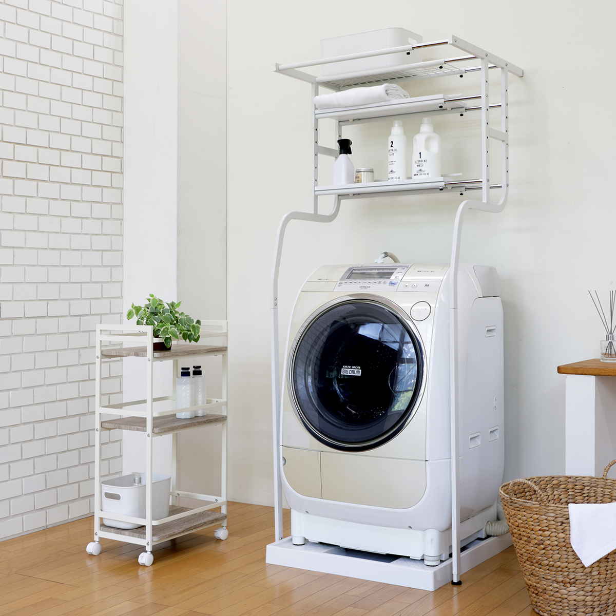 組み立てたら立て掛けるだけで洗濯機上の空間をあっという間に有効活用できるラックです。既に置いてある洗濯機を移動させずにラクに設置が可能です。