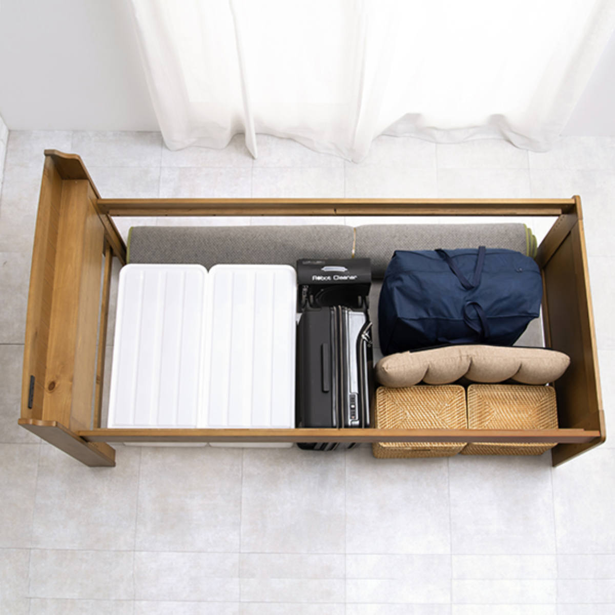 衣裳ケースはもちろん、普段使用しない大型サイズの物も仕切りが無いのでスッキリと収まります。季節物のカーペットや大きなキャリーケース、高さのある家電の収納にもおすすめです。