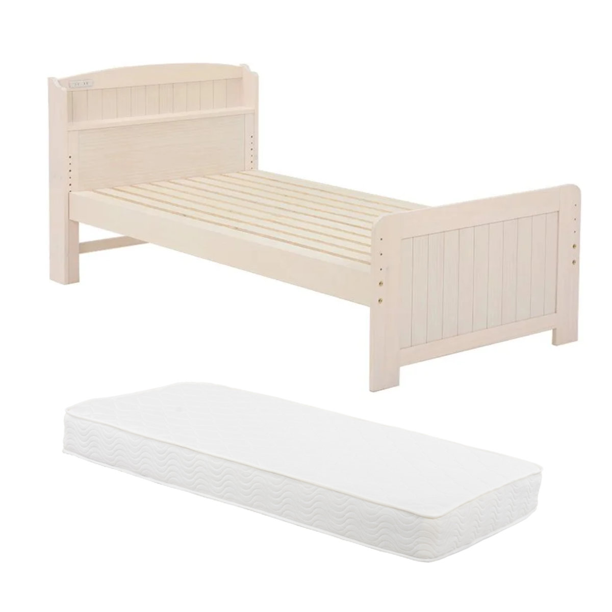 ベッド ポケットマットレス付き シングル 宮棚 2口コンセント 敷き布団OK ( 高さ調節 圧縮梱包 マットレス付 シングル すのこ 天然木 コンセント付 厚さ19cm 寝具 ナチュラル ライトブラウン ホワイトウォッシュ ) 【ホワイトウォッシュ】