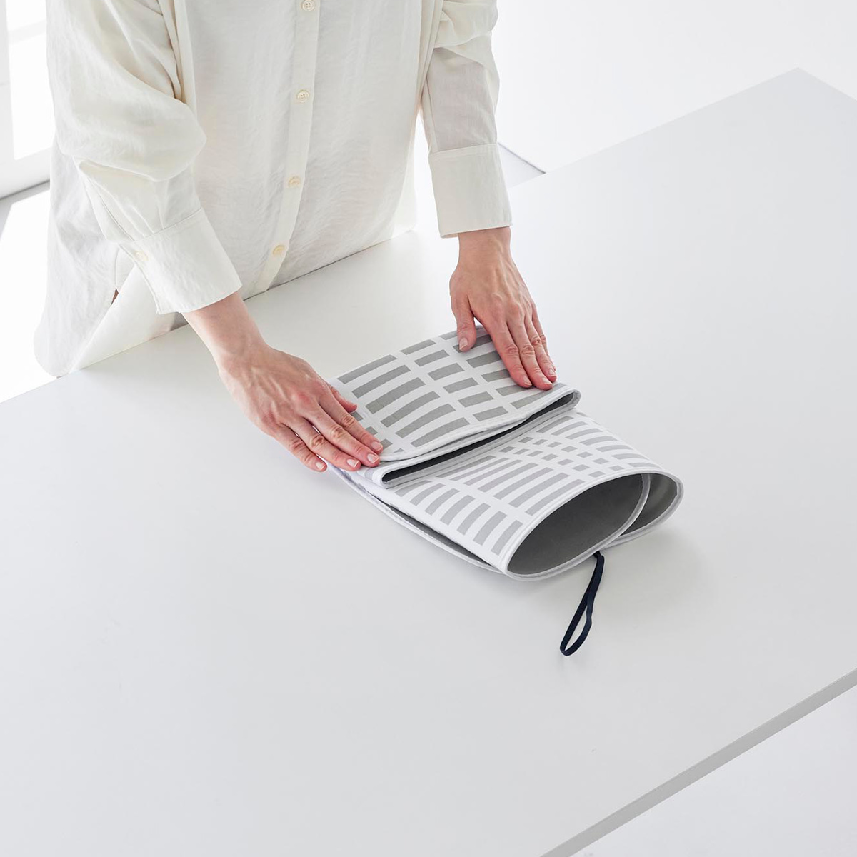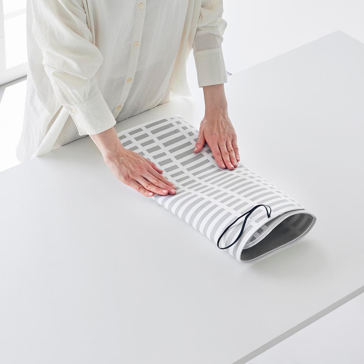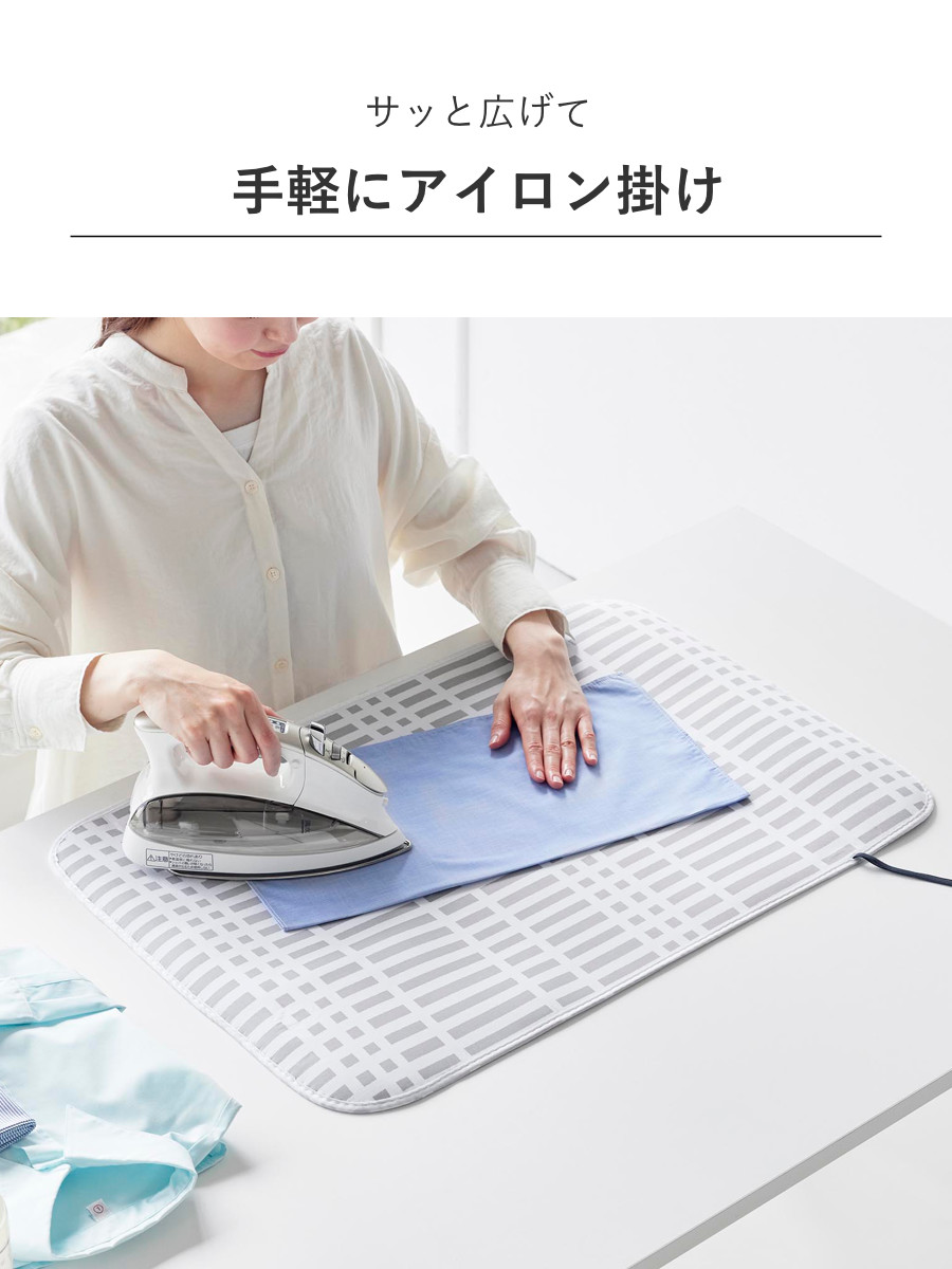 シンプルさと機能性を兼ね備えたスタイリッシュなアイロンマットです。忙しい朝の急なアイロン掛けなどにも、サッと広げて直ぐにお使いいただけます。