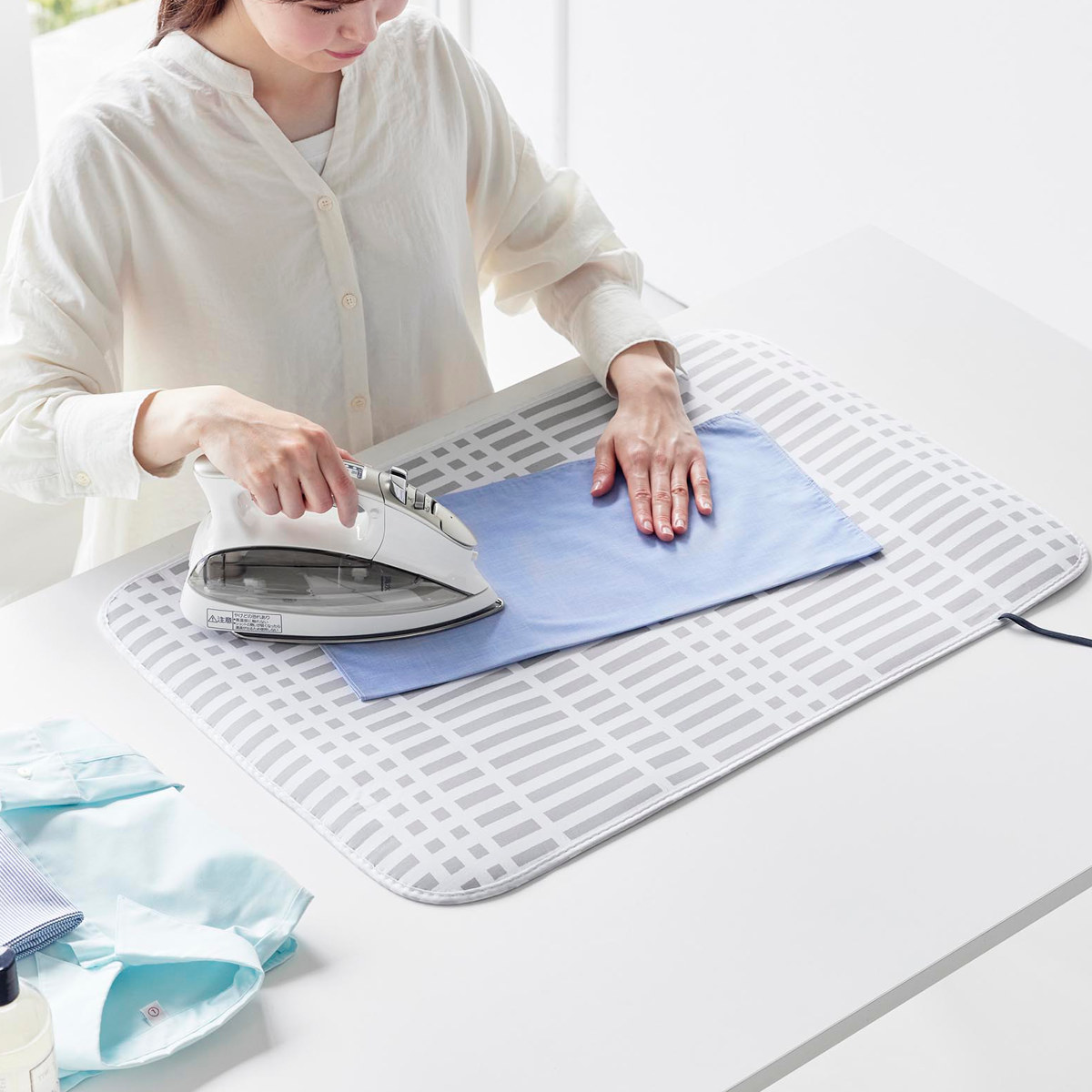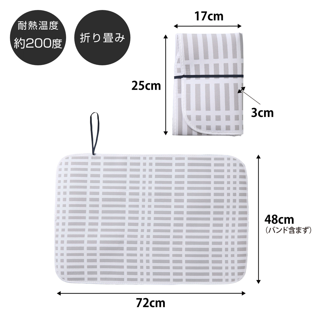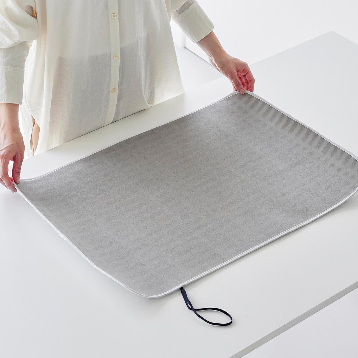 シンプルさと機能性を兼ね備えたスタイリッシュなアイロンマットです。忙しい朝の急なアイロン掛けなどにも、サッと広げて直ぐにお使いいただけます。