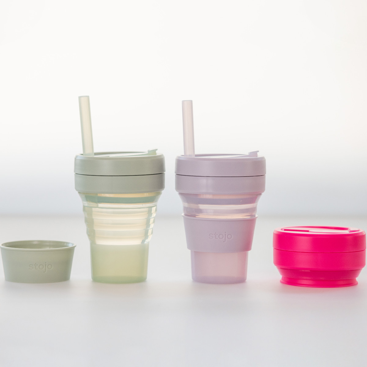 タンブラー stojo 470ml 折りたたみ 半透明 BIGGIE Jelly ( ストージョ 折り畳み カップ 蓋付き ストロー 持ち運び 食洗機対応 シリコン BPAフリー ビギー マイカップ マイタンブラー 水筒 クリア コップ アイス ホット ) 【JellyLilac】