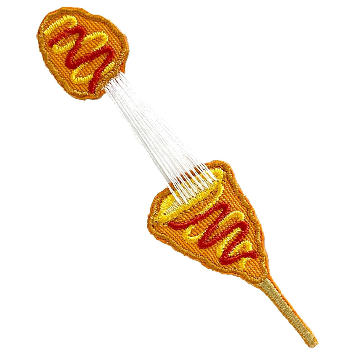 刺繍 ワッペン のびーるワッペン 食べ物 シール アイロン ( シールワッペン 刺繍ワッペン アップリケ わっぺん 大人 子供 ファッション おしゃれ ワンポイント デコレーション リメイク アイロン不要 簡単接着 ) 【チーズハットグ】