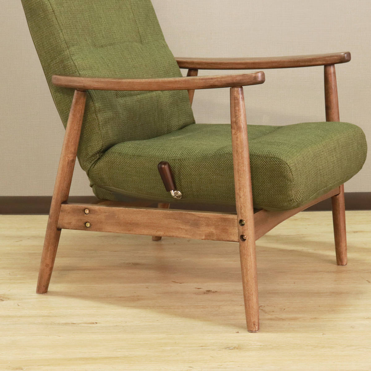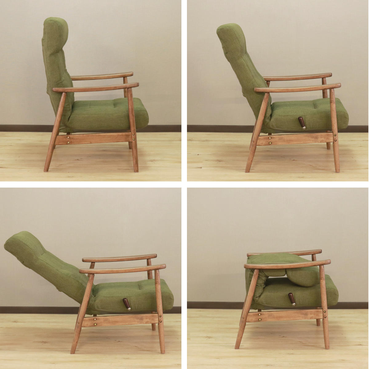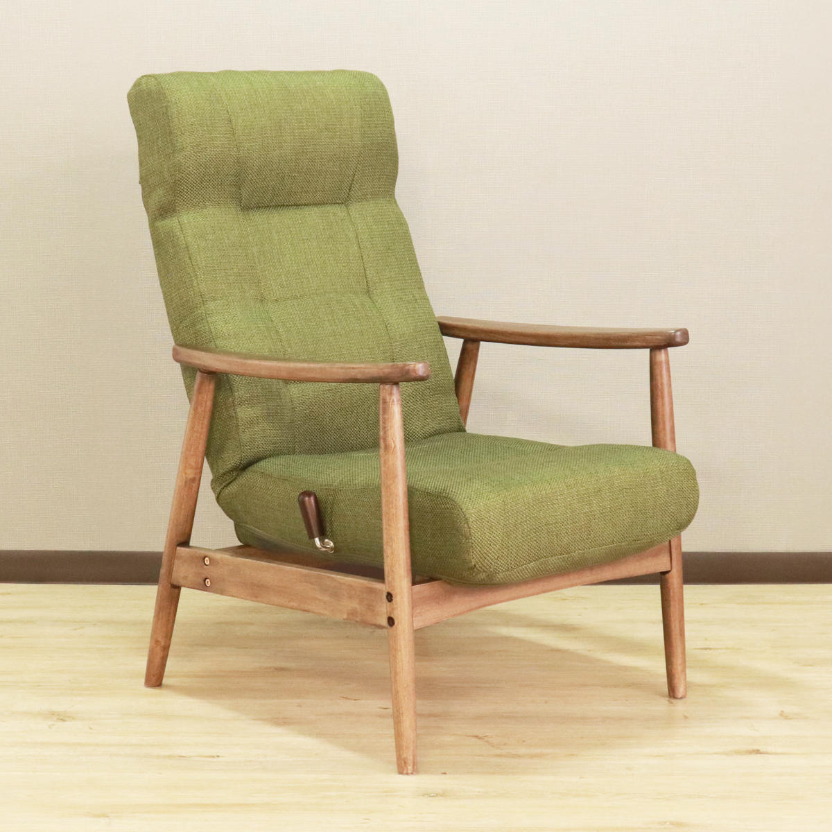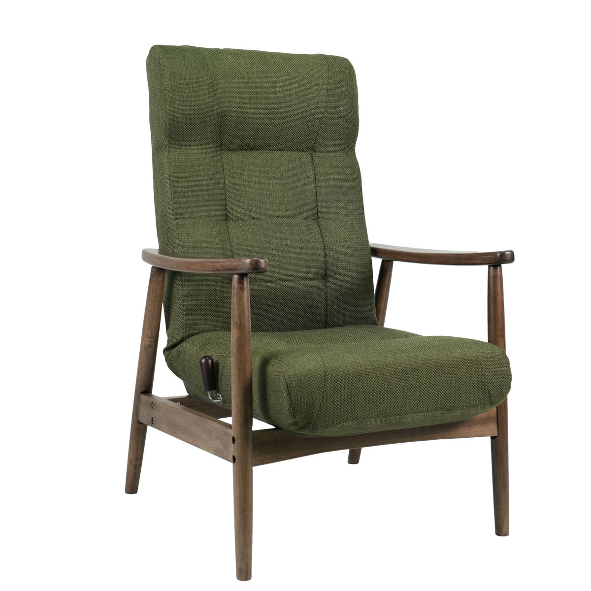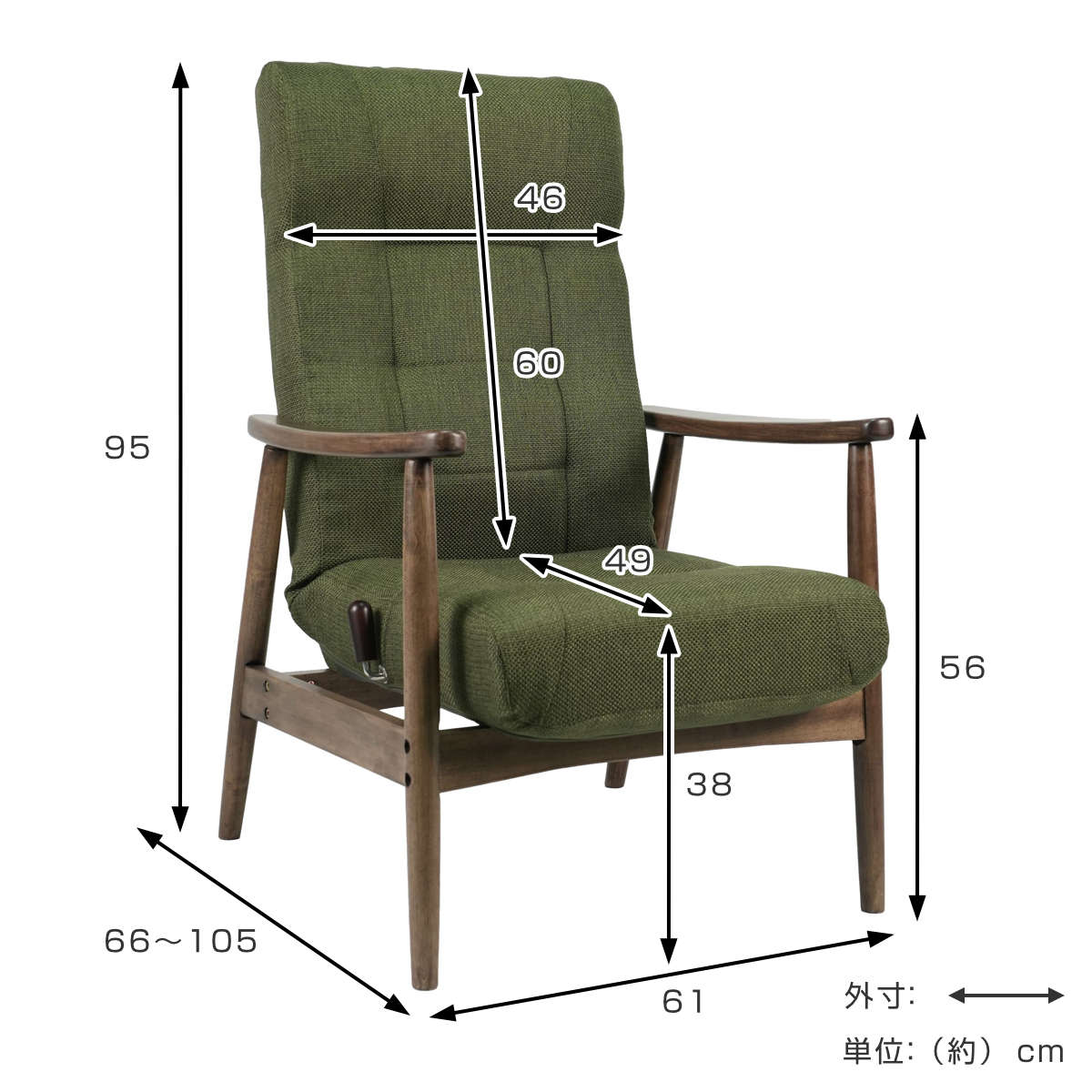 リクライニングチェア 高座椅子 マインズ ( ハイバック 肘付 ヘッドレスト 天然木 木製 フレーム 1人掛け チェア 椅子 リビング 北欧 ナチュラル シンプル レトロ調 おしゃれ )