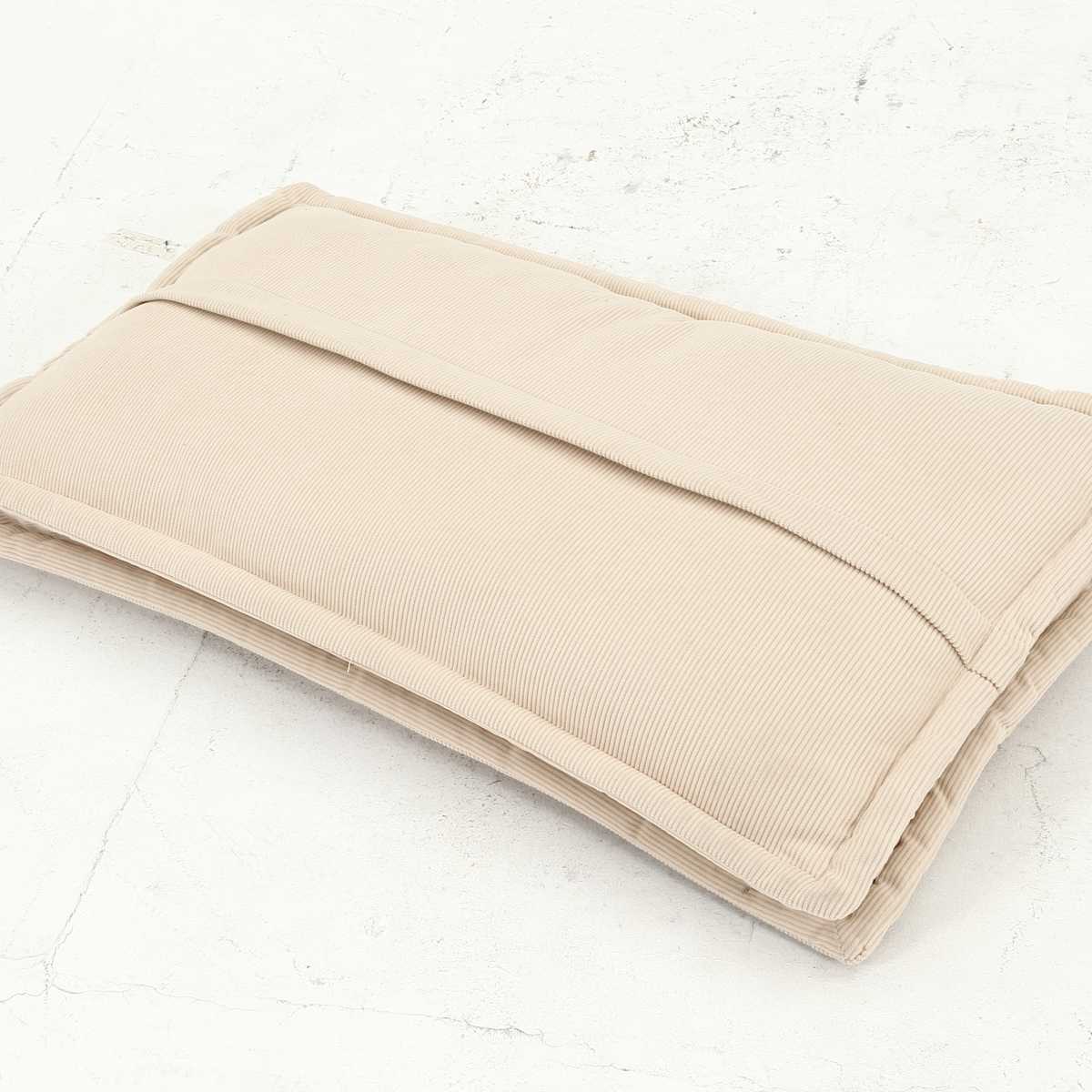 座面の裏側にはクッションを収納できるスペースがあります。ファスナーを開けると付属のクッションがピッタリ収まるため、お部屋をスッキリ魅せたい時や引越しの時などにも便利です。
