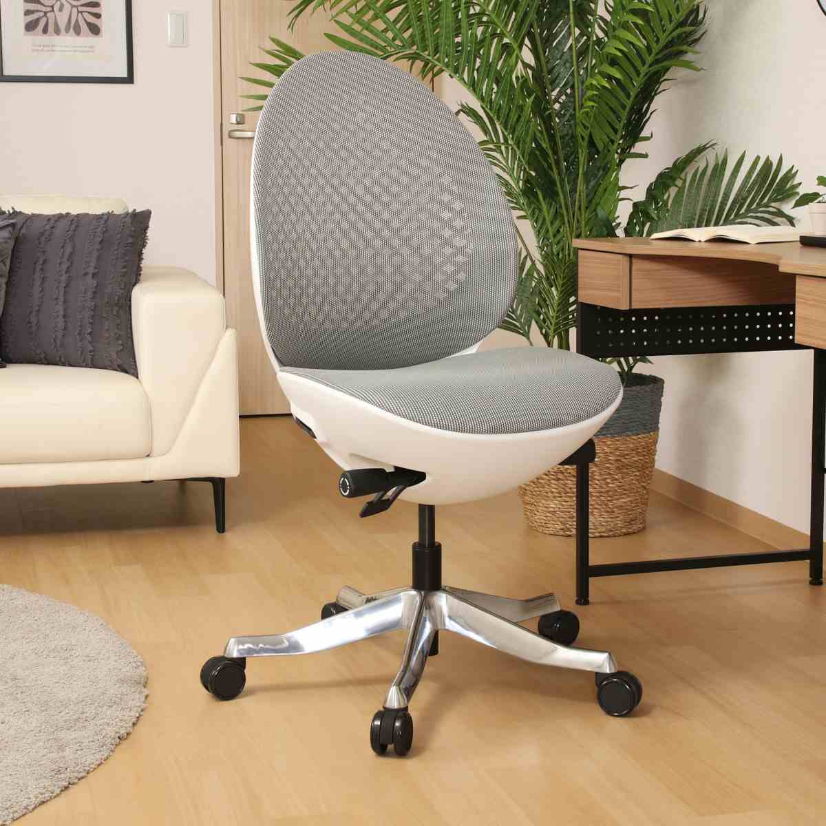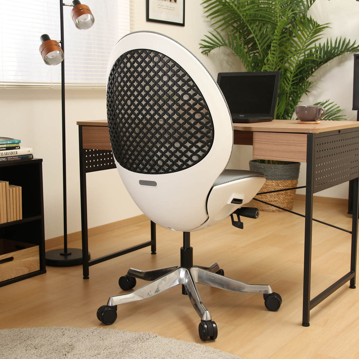 卵のような丸みを帯びたデザインが目を惹くオフィスチェアです。思わず座りたくなる特徴的なシルエットです。