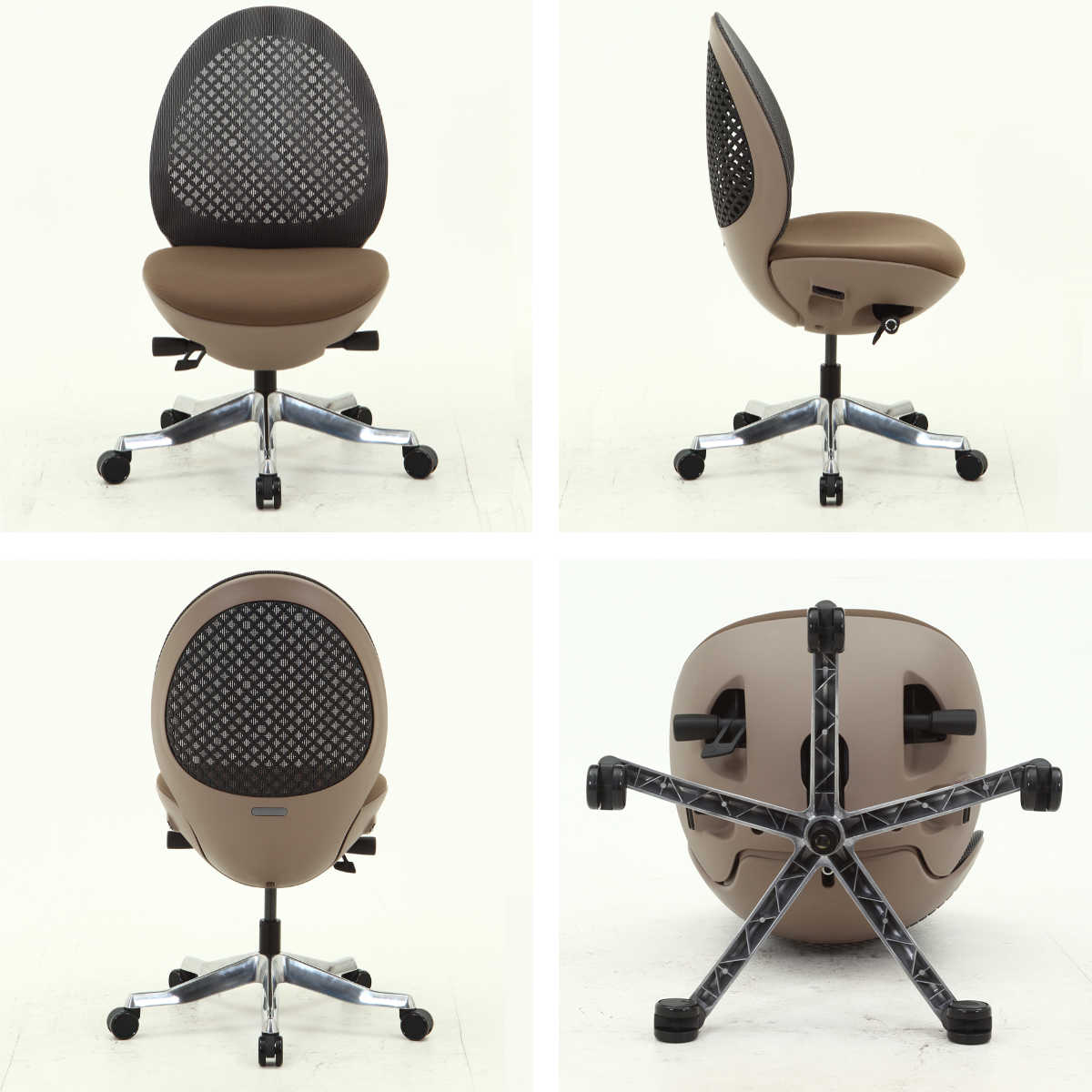 卵のような丸みを帯びたデザインが目を惹くオフィスチェアです。思わず座りたくなる特徴的なシルエットです。