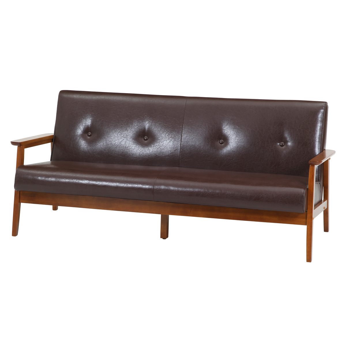 ソファ 3人掛け 座面高36cm レザー調 バイキャストPUソファ ミート ( 肘付き 天然木 木製 フレーム シンプル ビンテージ調 ブルックリン風 レトロ調 ) 【ライトブラウン】