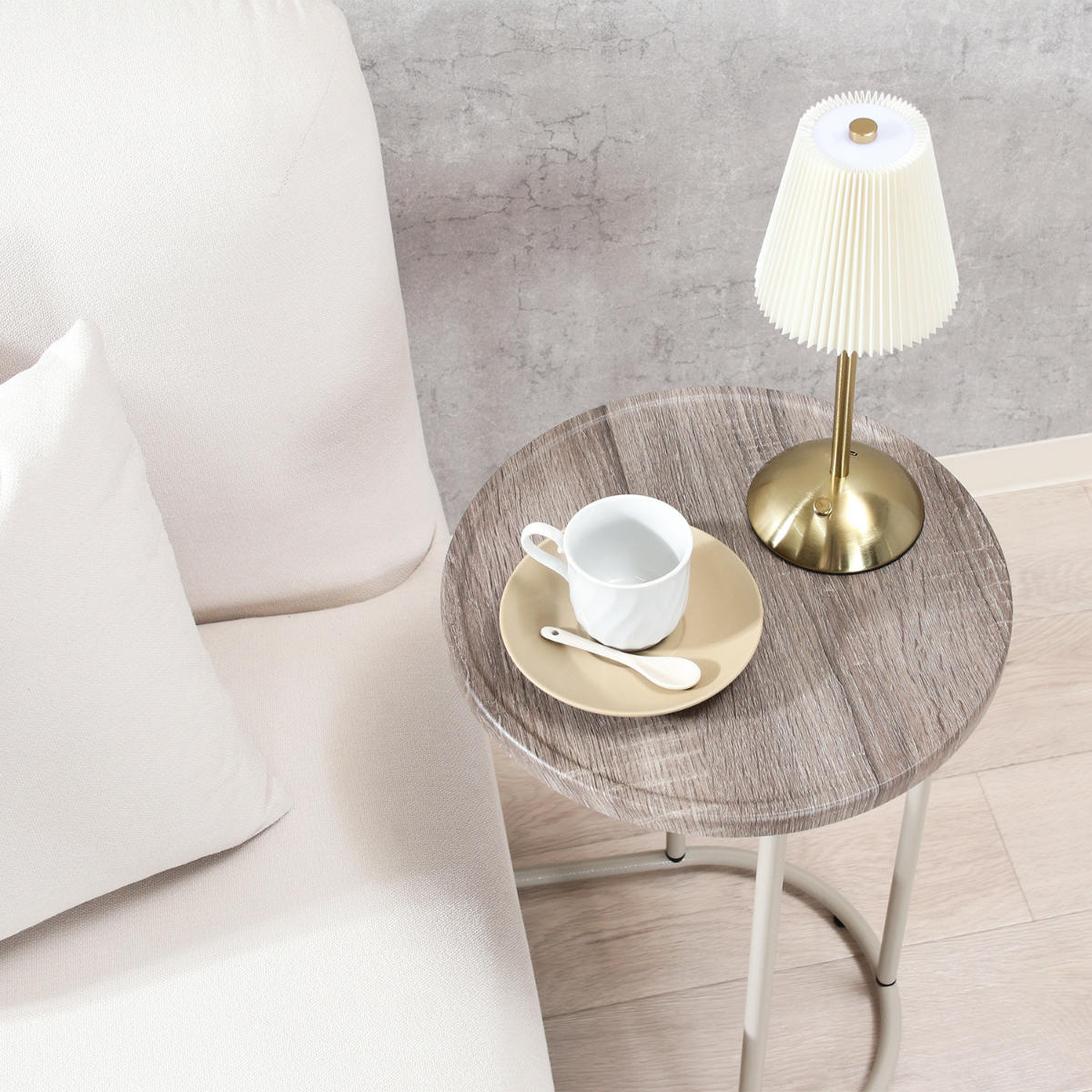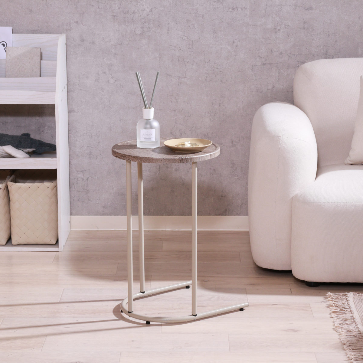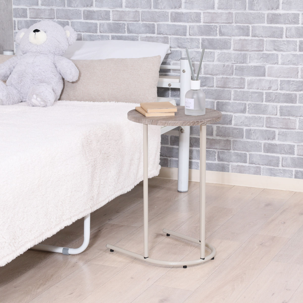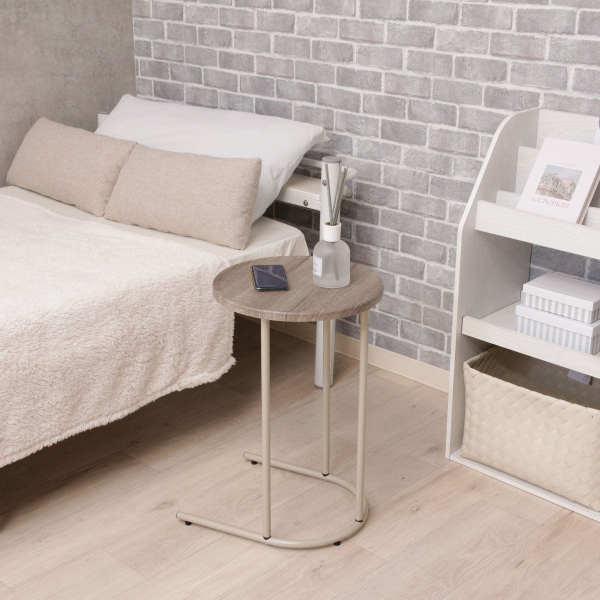 サイドテーブル 天板円型 高さ53.5cm Chamill ( 丸 円形 木目調 ナイトテーブル ミニテーブル ソファ ベッド 横 差し込み U字型 おしゃれ シンプル 韓国風 北欧風 インテリア ) 【グレージュ】