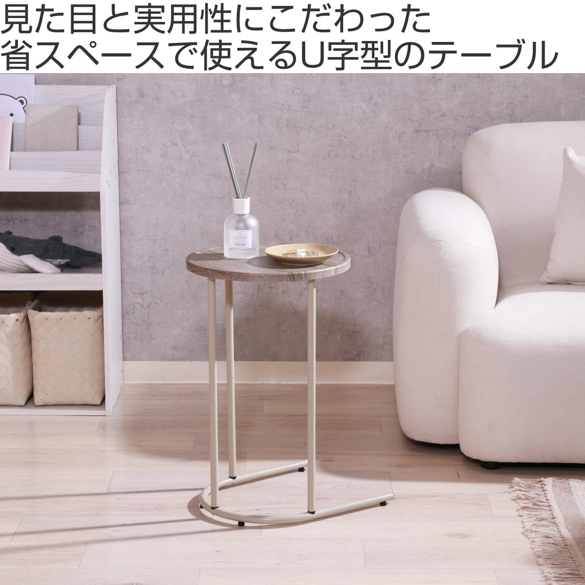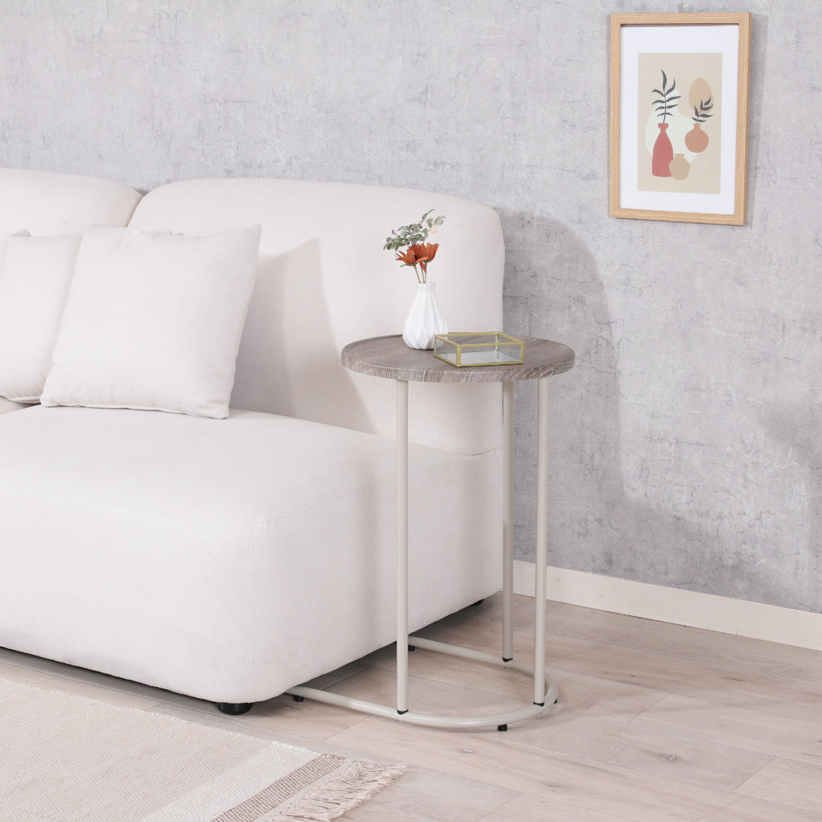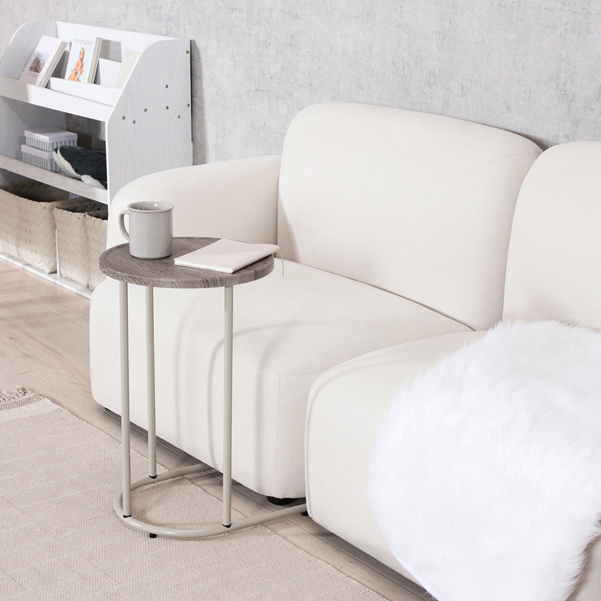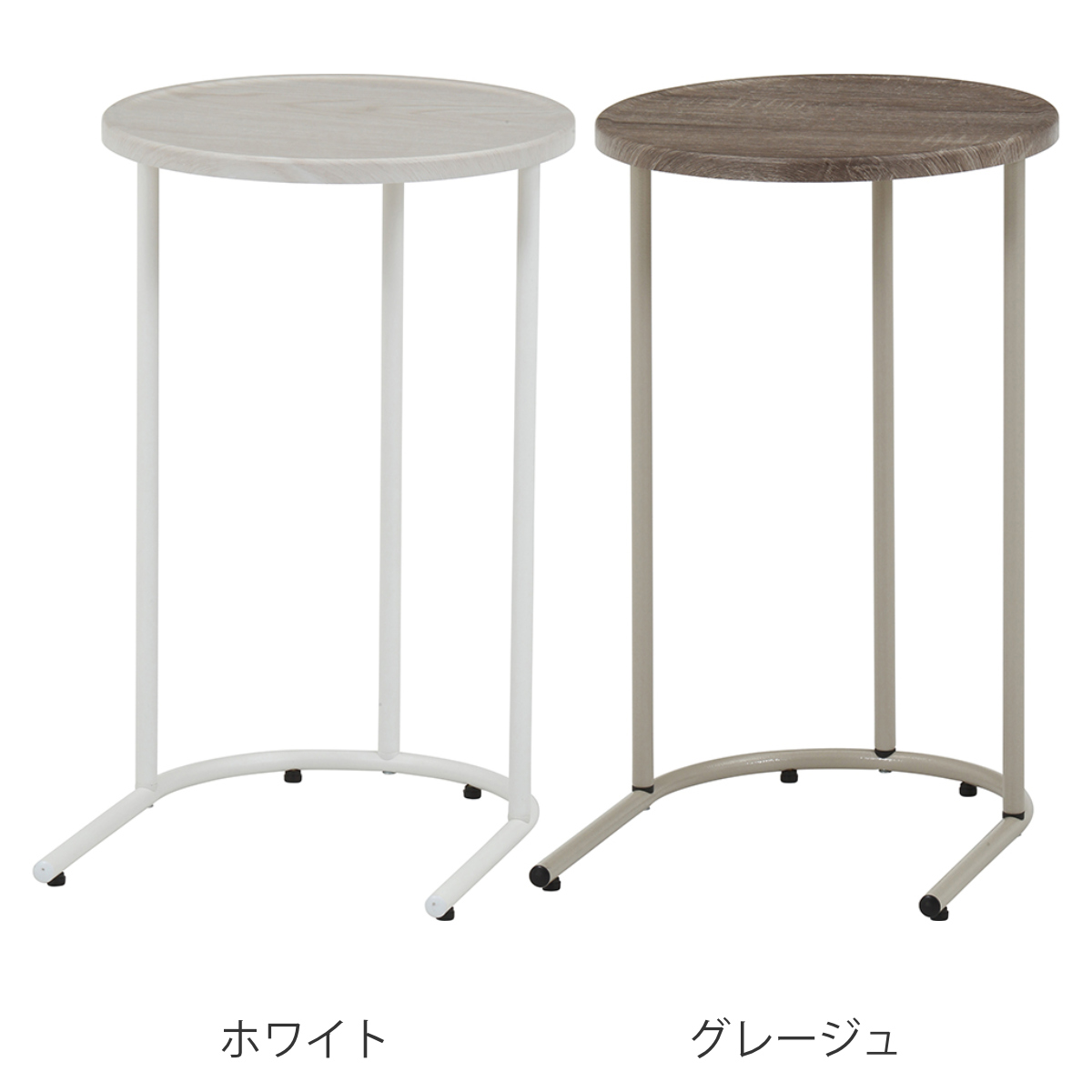サイドテーブル 天板円型 高さ53.5cm Chamill ( 丸 円形 木目調 ナイトテーブル ミニテーブル ソファ ベッド 横 差し込み U字型 おしゃれ シンプル 韓国風 北欧風 インテリア ) 【グレージュ】