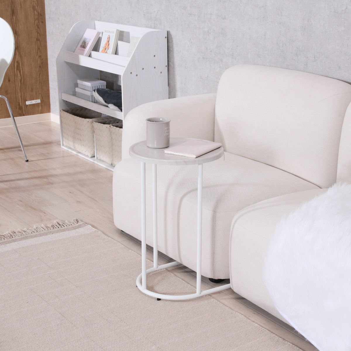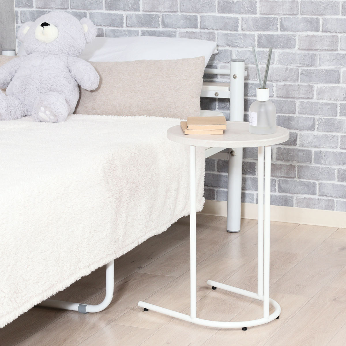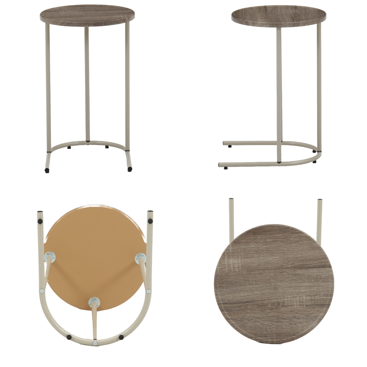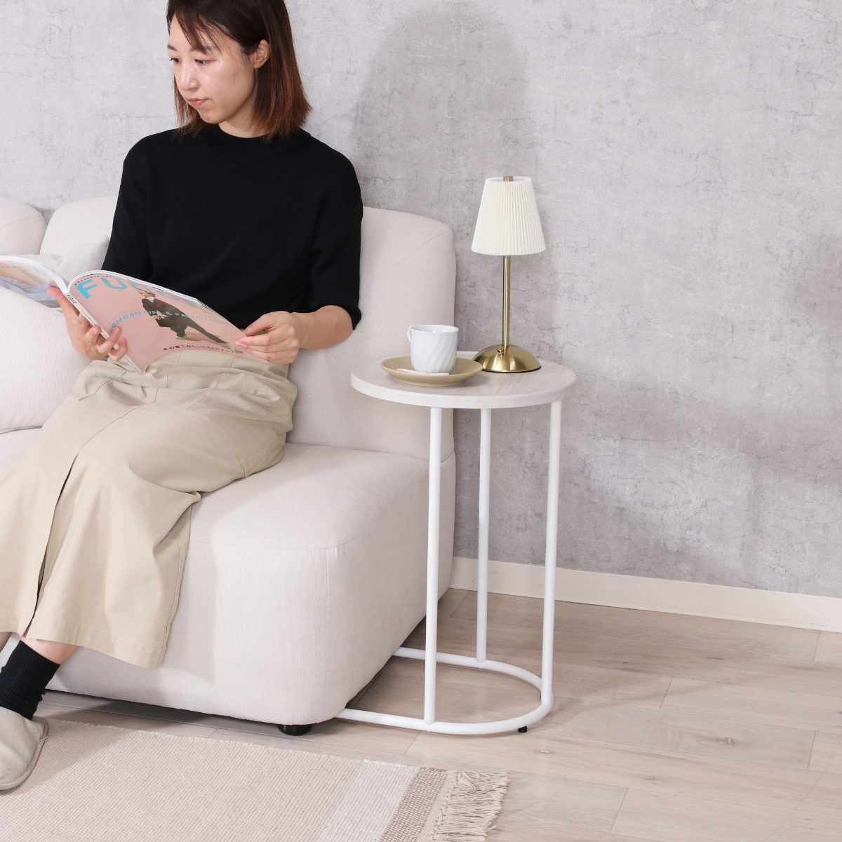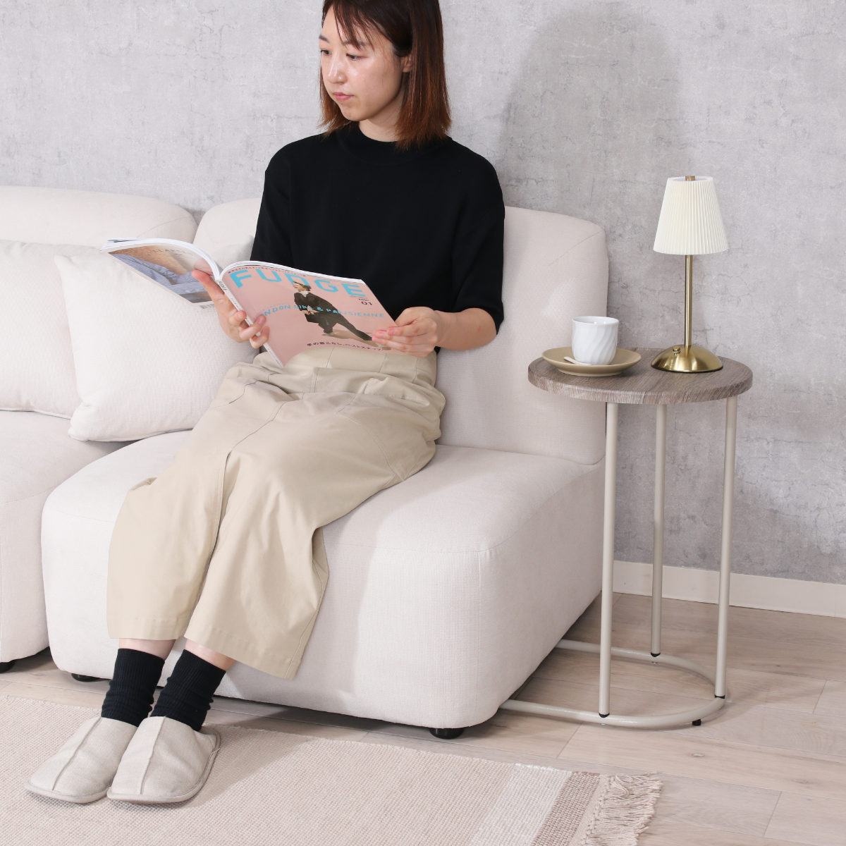 サイドテーブル 天板円型 高さ53.5cm Chamill ( 丸 円形 木目調 ナイトテーブル ミニテーブル ソファ ベッド 横 差し込み U字型 おしゃれ シンプル 韓国風 北欧風 インテリア ) 【グレージュ】