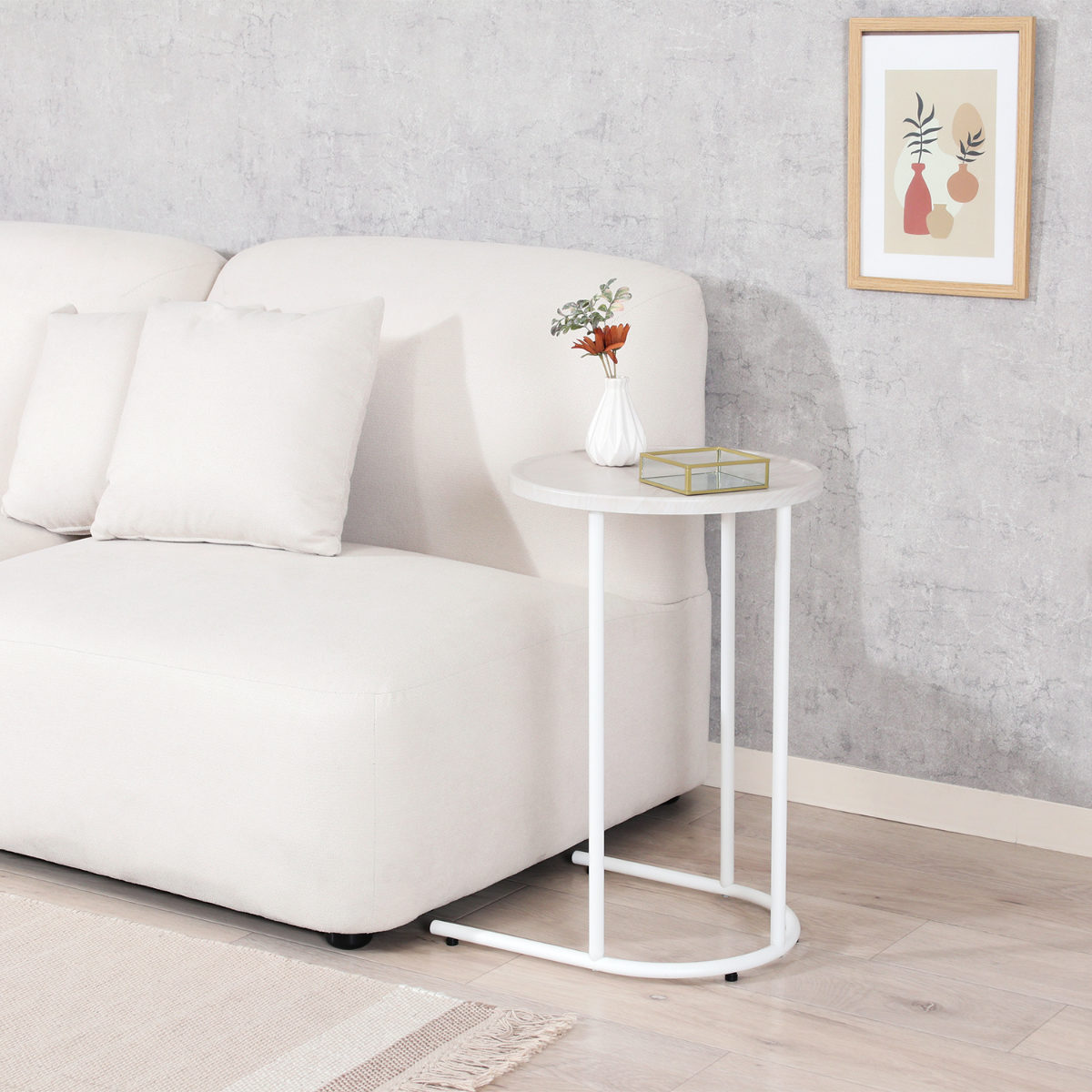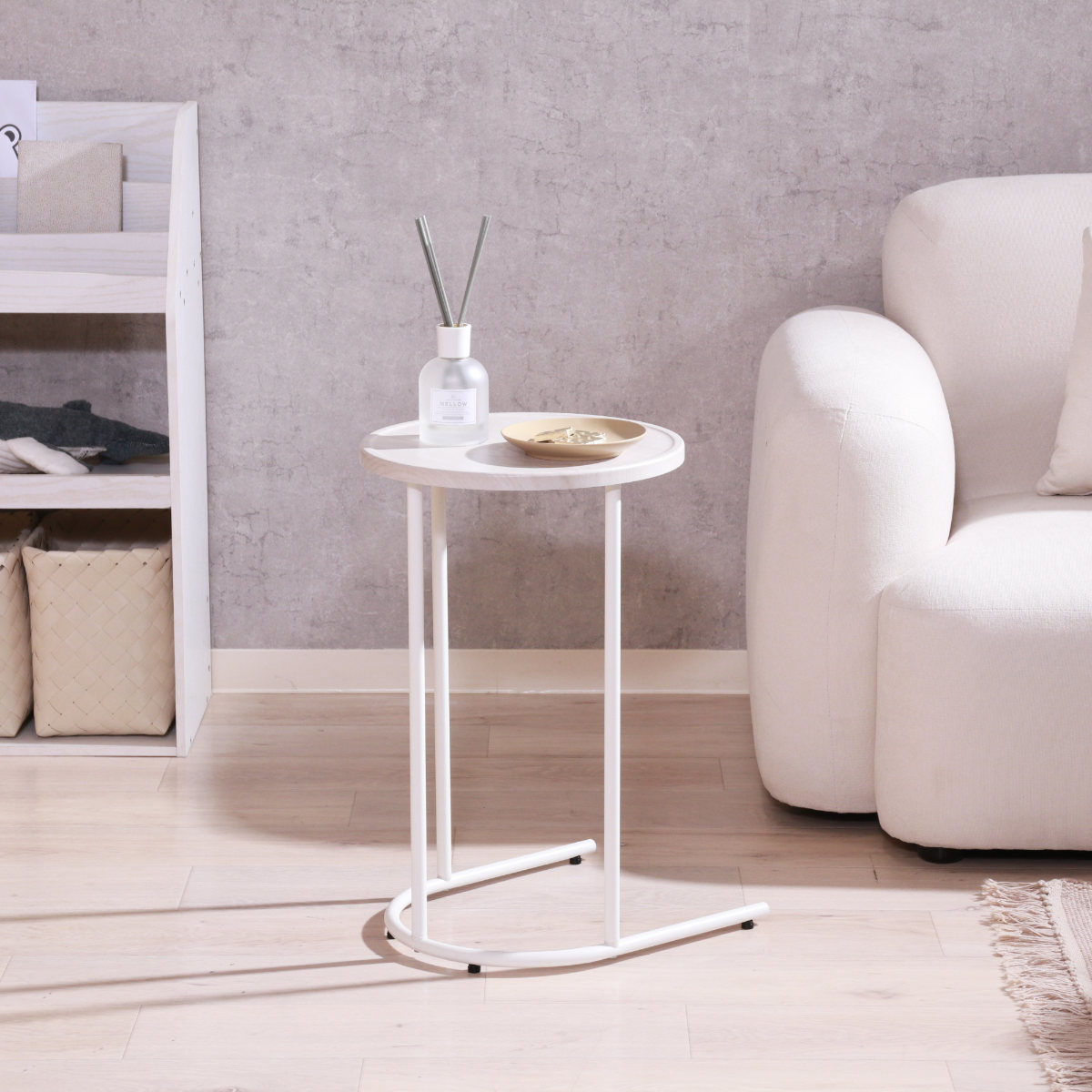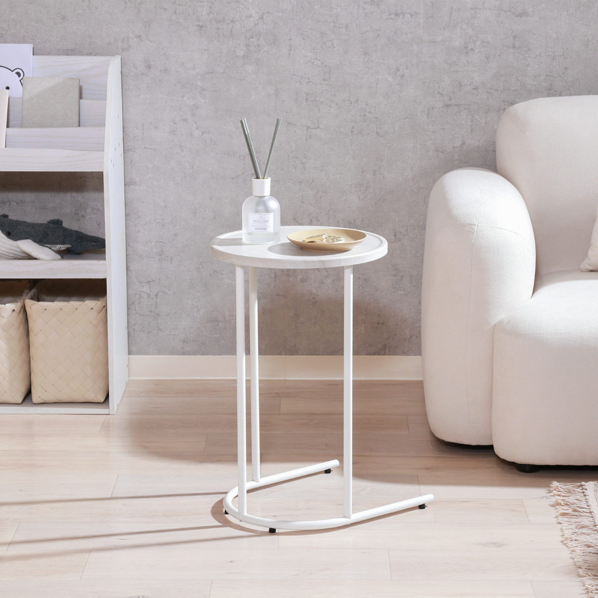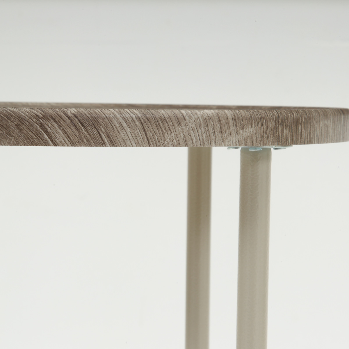 サイドテーブル 天板円型 高さ53.5cm Chamill ( 丸 円形 木目調 ナイトテーブル ミニテーブル ソファ ベッド 横 差し込み U字型 おしゃれ シンプル 韓国風 北欧風 インテリア ) 【グレージュ】
