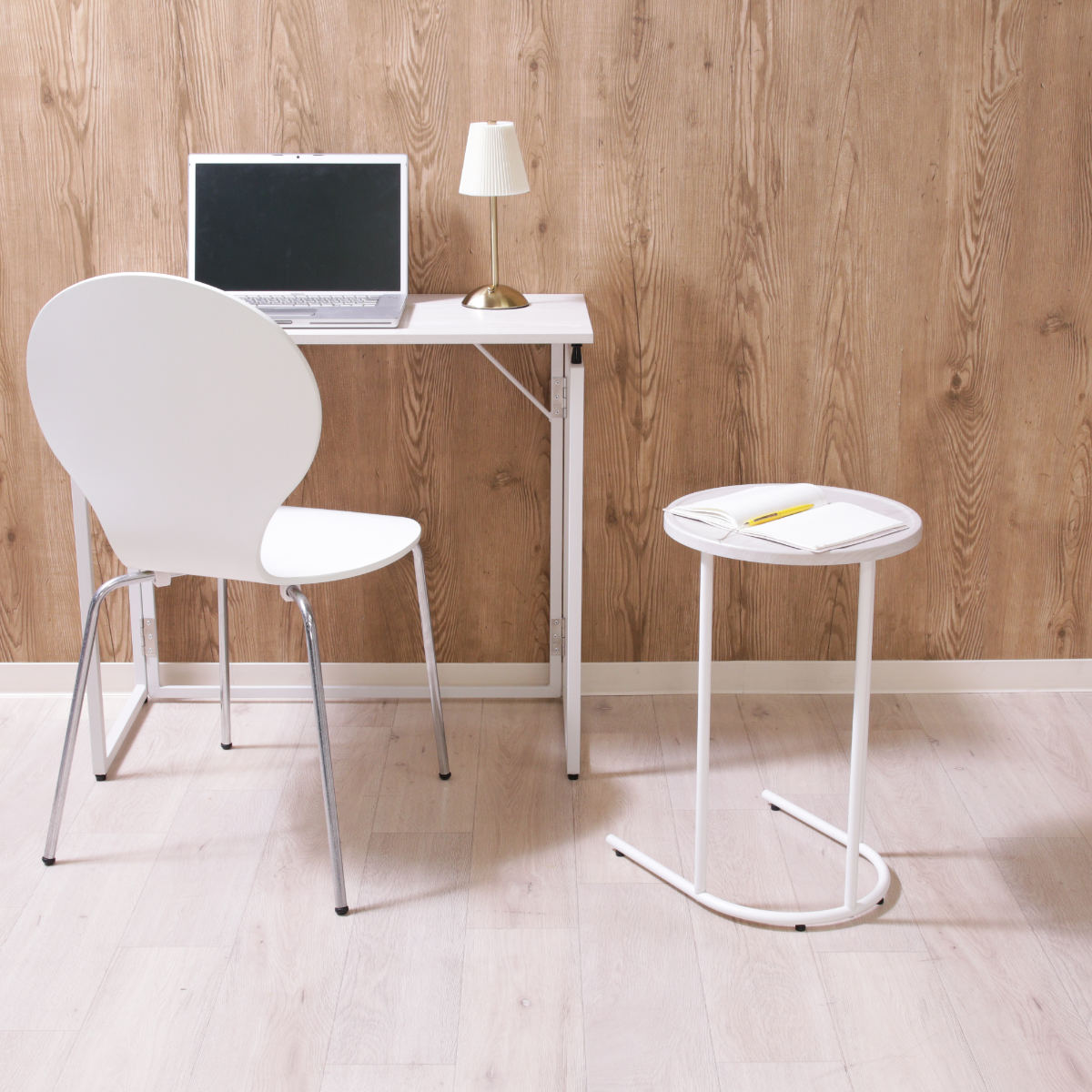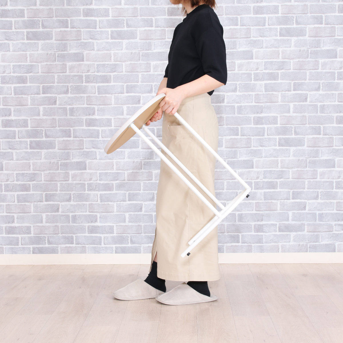 天板は直径約34cmとコンパクトで使いやすいサイズです。ライトやキャンドルを置いたり、パソコン作業や軽食などにも使えます。