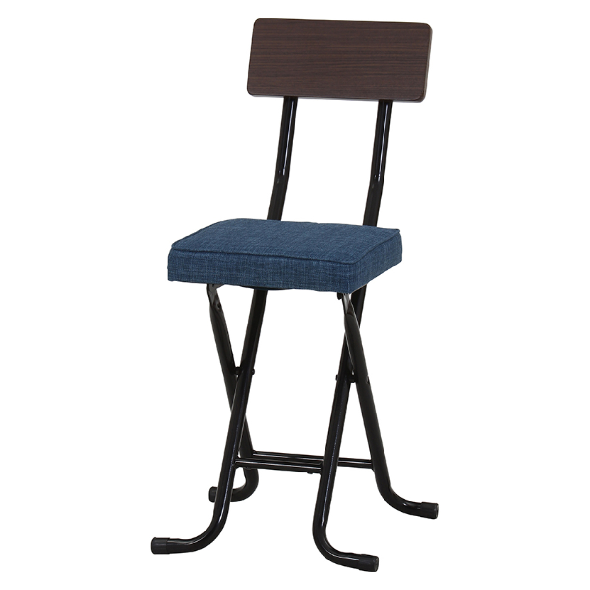 折りたたみ椅子 座面高47cm 背もたれ付 厚座タイプ ノエル ( レザー調 ファブリック 座面 ダイニング キッチン リビング デスク ツートン おしゃれ スリム チェア ) 【ブルー】