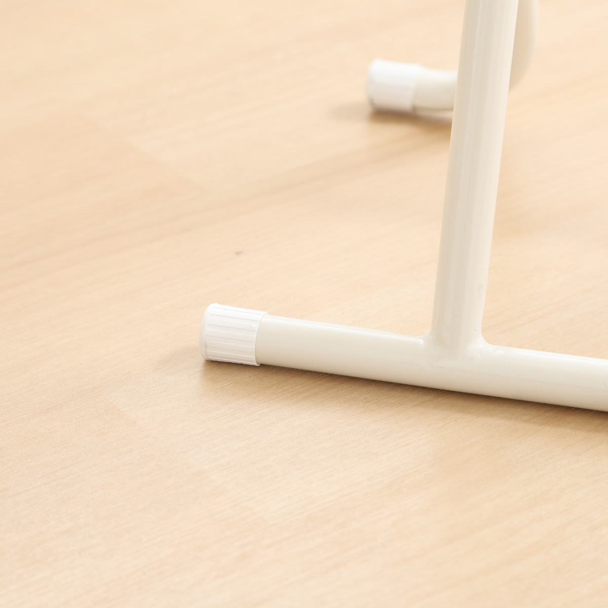 脚はL字型になっているため安定感があります。また、先端にはキャップが付いているので、フローリング上でも滑りにくく、床にも傷がつきにくい仕様になっています。