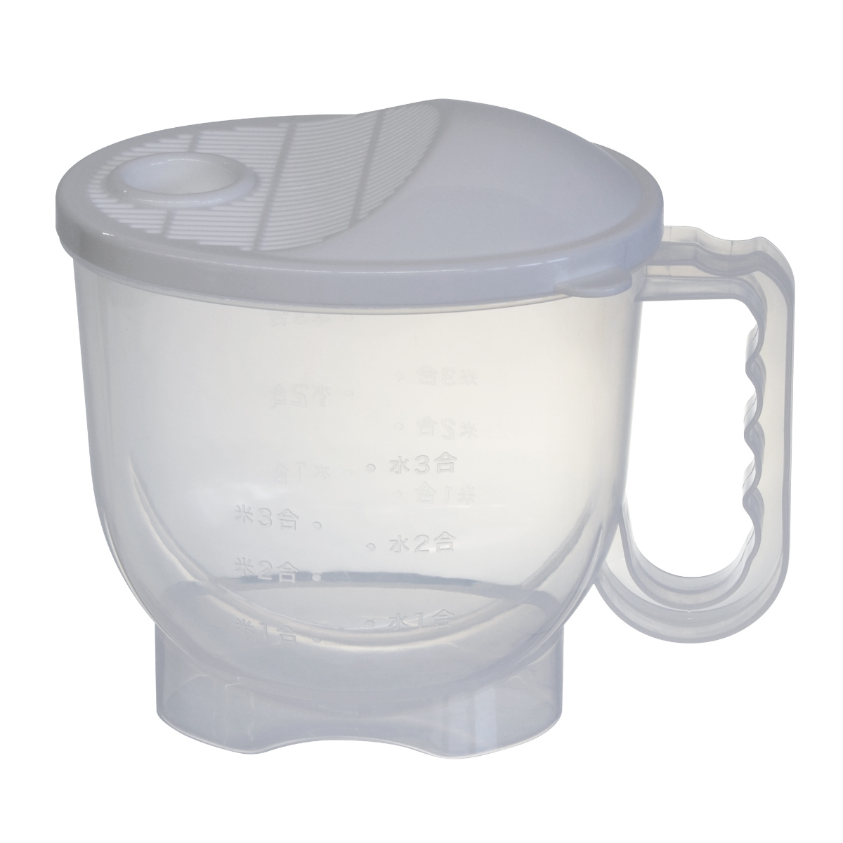 本体には目盛りがついているので、容器に入れるだけでお米や水の量をはかれます。また、注ぎ口付きでフタをしたまま水が切れるので、お米をシンクにこぼす心配もありません。