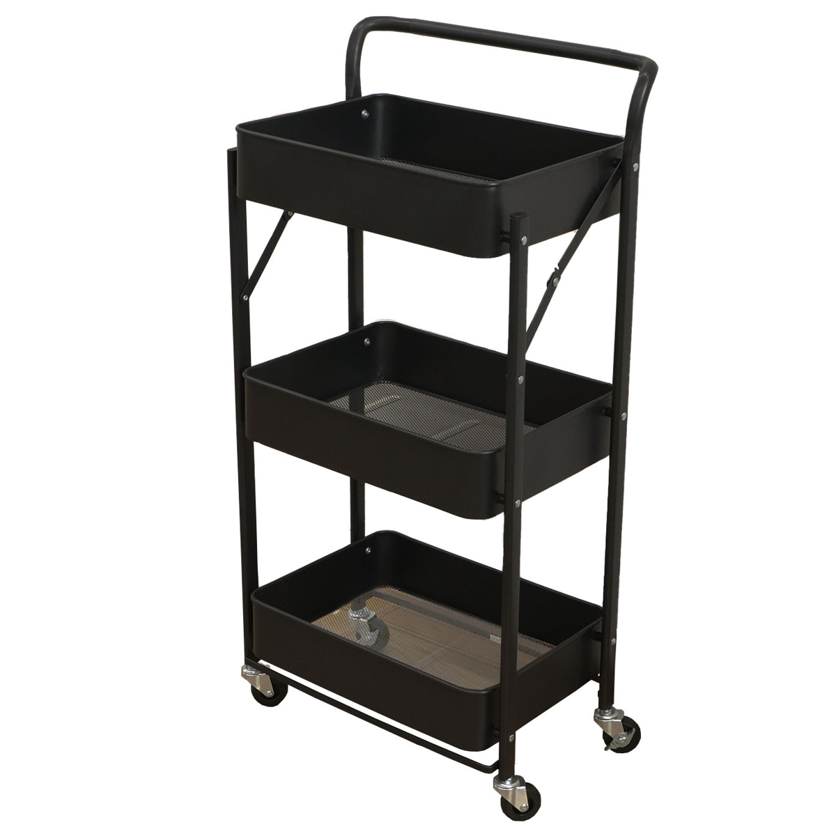 メッシュワゴン 幅45.5cm 3段 折りたたみ キャスター付き ( 収納 メッシュ ラック カート 簡単組み立て 専用フック キッチンワゴン サイドワゴン キャスターワゴン ホワイト ブラック BK WH オシャレ ) 【ブラック】